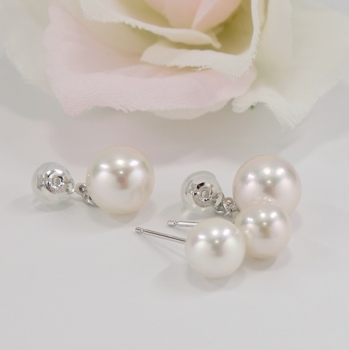 K18WG アコヤ真珠ピアス 8.0-8.5mm 6.5-7.0mm | |||