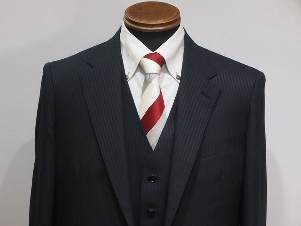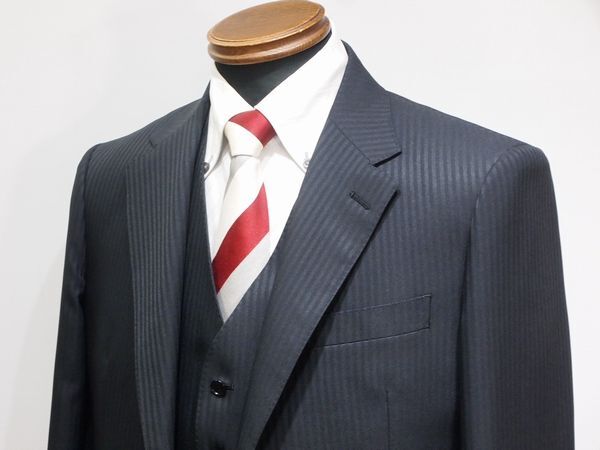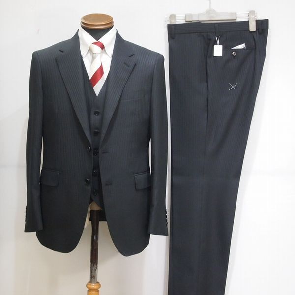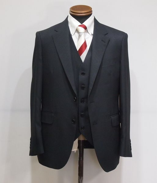新入荷■こだわり商品■5551■ノータック 2っ釦スリーピース■AB4■ブラック■シャドーストライプ