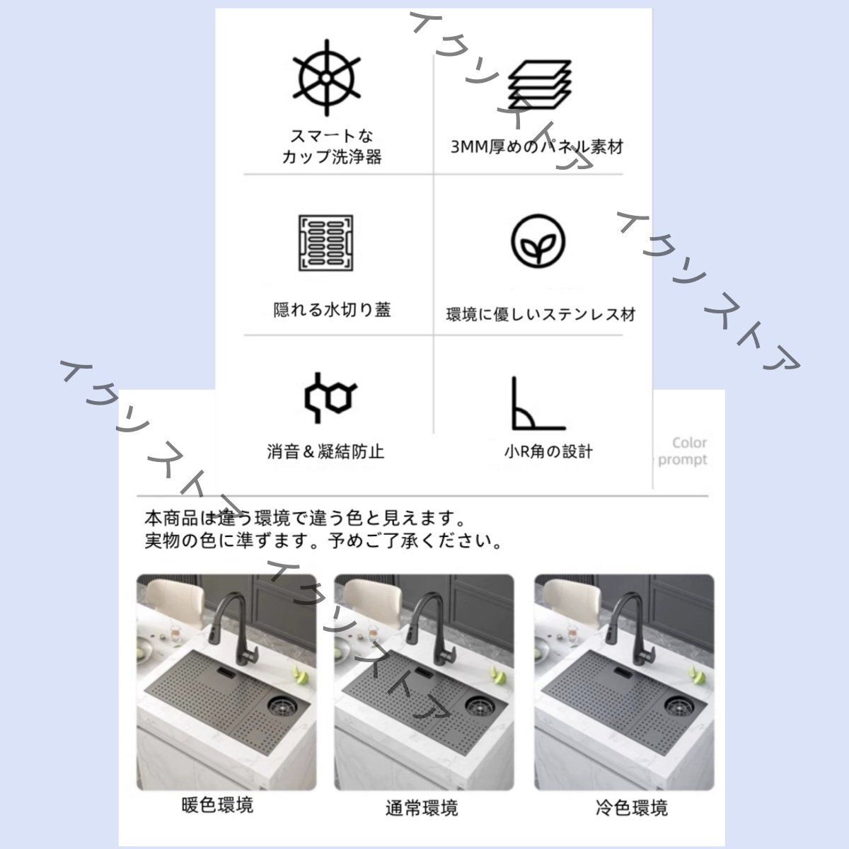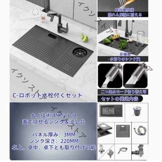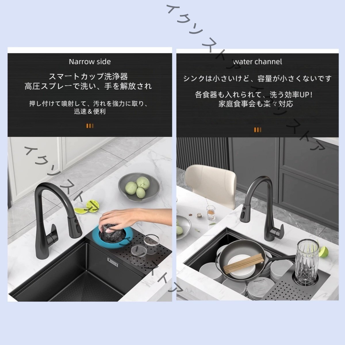 | 商品説明 材質:ステンレス 表面処理:ナノ塗装 純重量:約7KG シンクサイズ:60*32CM「穴開きサイズ:57*29CMを推薦致します」 本出品価格はセット内容:C-ロボット水栓付くセットの対象です。 *詳細サイズは写真をご参照お願いいたします。 最新品 グレードアップ 輸出高級質量 機能が増える 蓋付き シンクを隠れる カップ、瓶などを 洗う専用設置 本シリーズはシンクサイズとセット内容を多種類「下記に纏め」で出品致しますので、 ご希望のサイズとセット内容を質問ページ、お問い合わせページで連絡したら、迅速にご案内できます。 シンクサイズ:55*26CM、60*32CM、55*40CM、60*40CM、68*40CM セット内容:A-標準セット「水栓が付かず」、B-円形水栓付くセット、C-ロボット水栓付くセット、D-三段階折り畳み水栓付くセット、E-伸縮水栓付くセット、F-7字伸縮一体水栓付くセット。 キッチンシンク 台所用 家庭用シンク ステンレス鋼シンク ガーデンシンク 業務用シンク キッチン 流し台 シンク DIY 工具 住宅設備 コンロ用品 水栓 水周り 洗い場 洗浄 飲食 【発送詳細】 ◆入金確認後2-3営業日発送させていただきます。 ◆配送番号は反映次第ご連絡致しますので、ご安心ください。 【注意事項】 ◆商品は検品後、問題のない商品を発送致します。 ただし、微細な汚れ.等が細かな見落としもあるかもしれません。 念のため神経質な方や、完璧なお品物を求める方は ご注文をお控えください。 本商品は特殊類の製品で発送したら、返品返金の対応はしません。 大変恐れ入りますが、ご理解いただける上でご入札お願いいたします。 ◆素材感や色合いの感じ方には個人差があり、撮影状況、PC環境により色合いが異なる場合がありますので、ご了承の上ご購入をお願いいたします。 ◆商品のサイズは採寸方法によって、若干な誤差が生じる場合はあります。ご了承ください。 ◆悪戯入札が多いので落札後の理不尽なキャンセルは、「Yahoo!ガイドライン、入札と購入に関するルール違反」として、 Yahooの方に利用停止、ID削除の要請を致します。責任を持って入札されます様お願い致します。 | |||