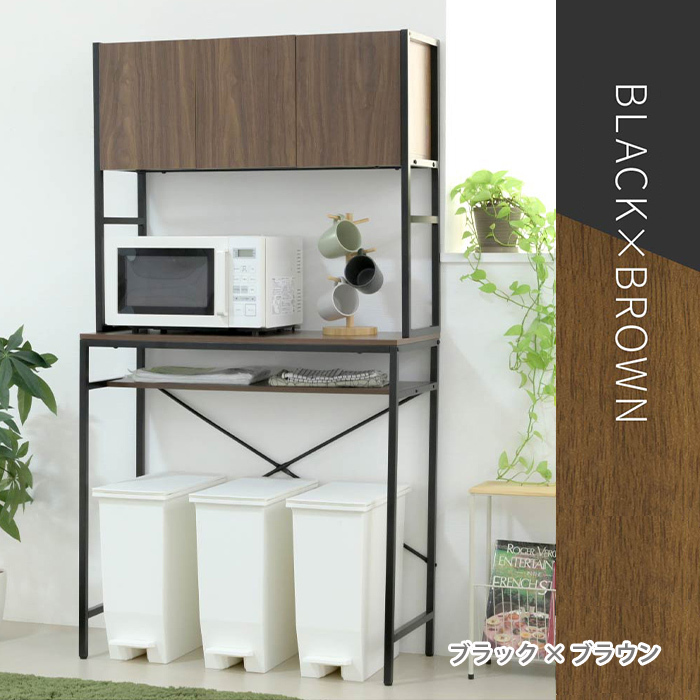 | キッチンボード カップボード ワイド 幅90 90cm 炊飯器 黒 白 シンプル 炊飯器 スチールラック 一人暮らし 下にゴミ箱 カウンター 横長 薄型 電子レンジ 扉付き |