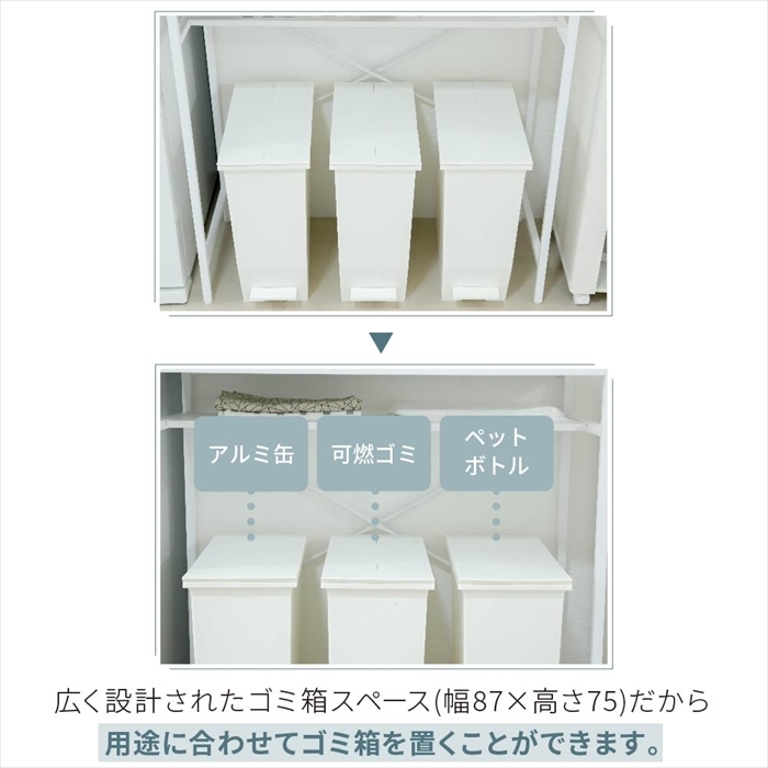 | 収納したいゴミ箱の数に合わせて選ぶことができるゴミ箱上収納ラック。 キッチンのスペースを無駄なく有効活用できるゴミ箱上ラック。 収納だけでなく、作業台としてもお使いいただけるので、キッチン収納の強い味方。 幅92cmのワイドタイプで、作業スペースも広々使えるキッチンラック。 |