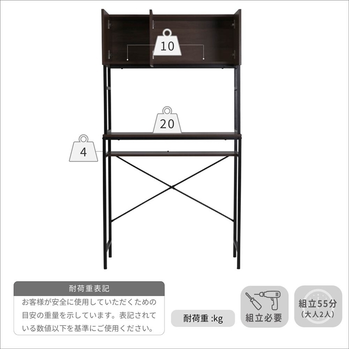 | [天板]約20kg以下 [固定棚]約4kg以下 [扉固定棚]約10kg以下 |
