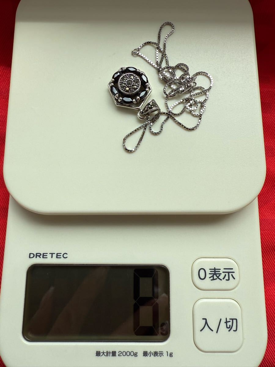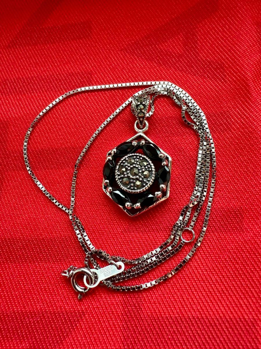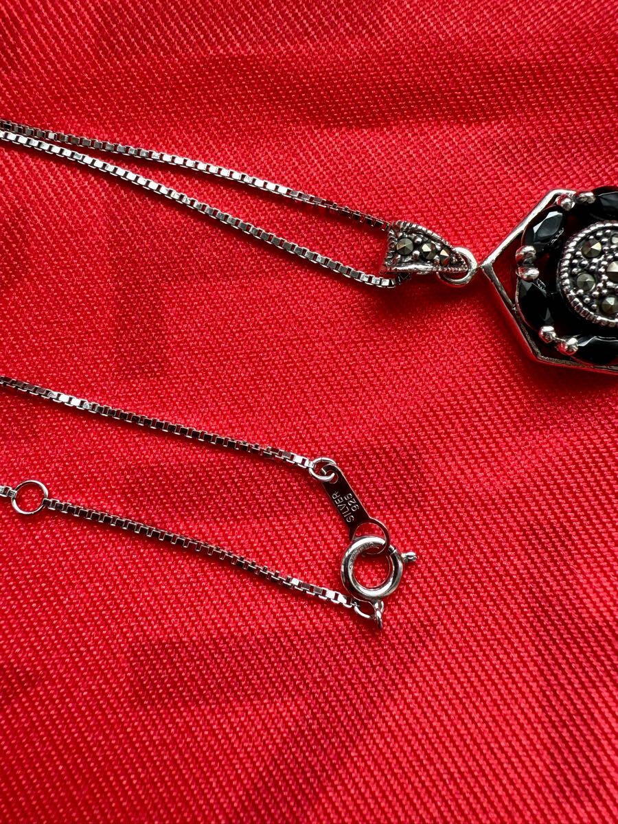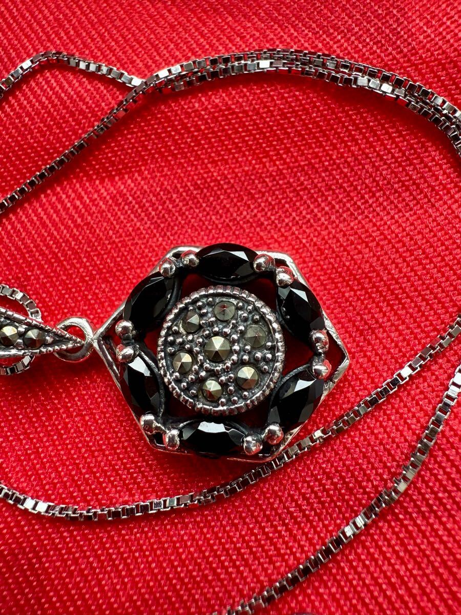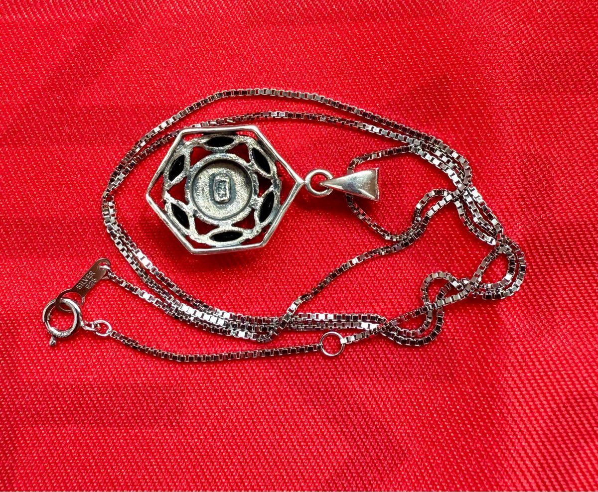 33.美しい製品*オニキス マーカサイト マルカジット 925 刻印 ペンダント トップ ヘキサゴン デザイン シルバー チャーム ヘッド
