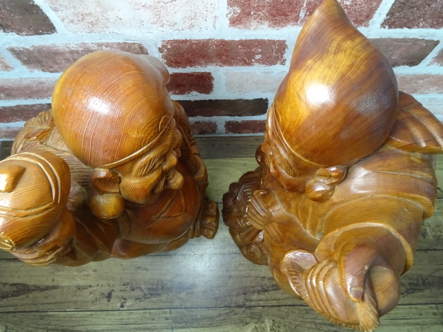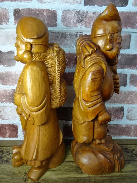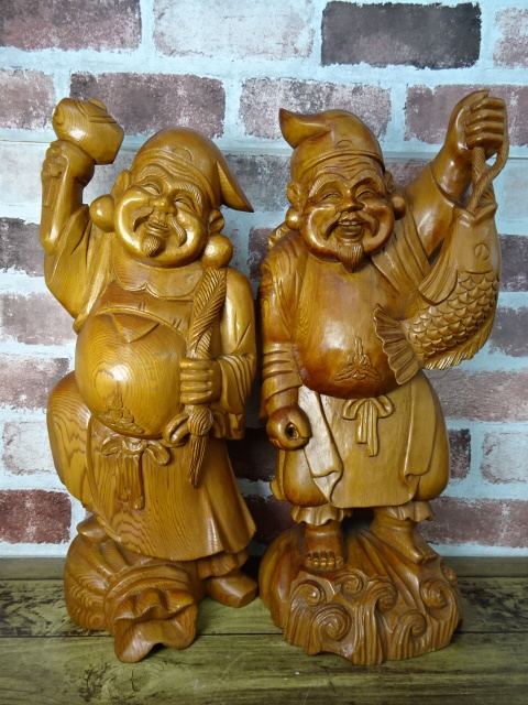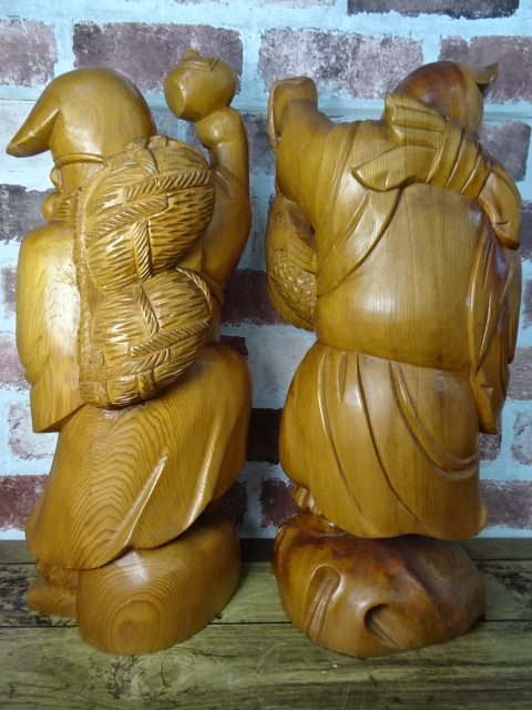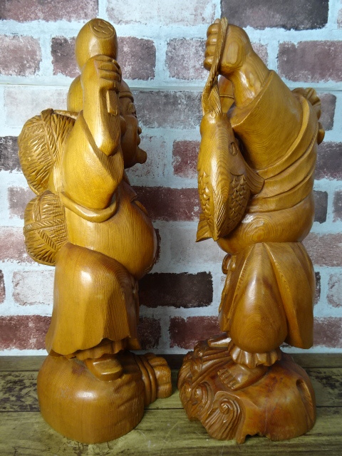 ●木彫り 大黒様 恵比寿様 高さ45.5㎝/46.5㎝ K6232 | |