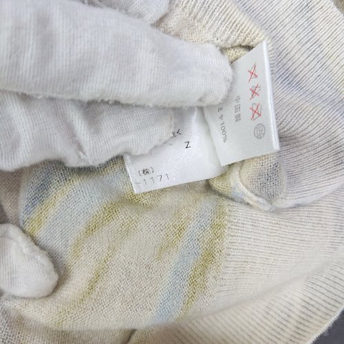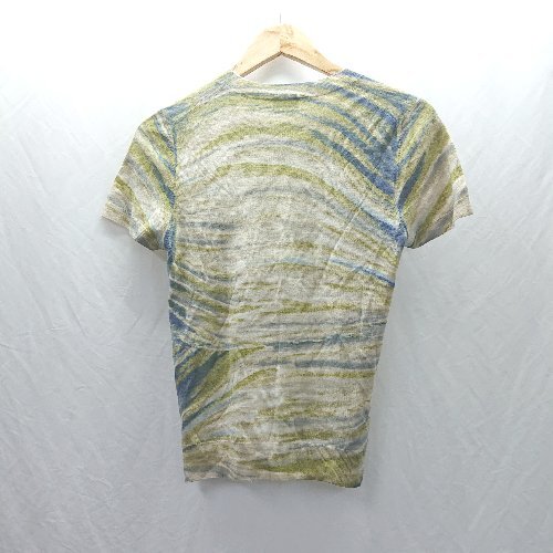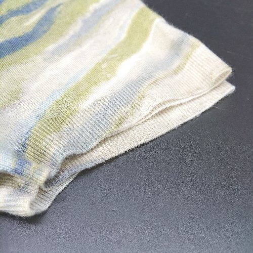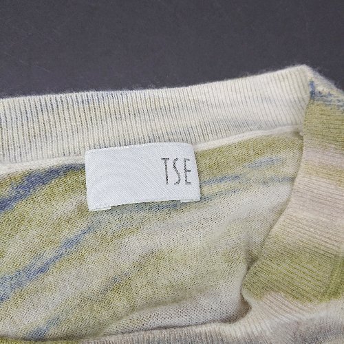◇ ⊂Φ TSE?セイ マルチカラー ニット ハイゲージ 半袖 Tシャツ サイズL グリーン ベージュ ブルー レディース E