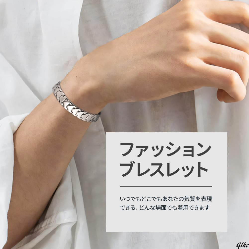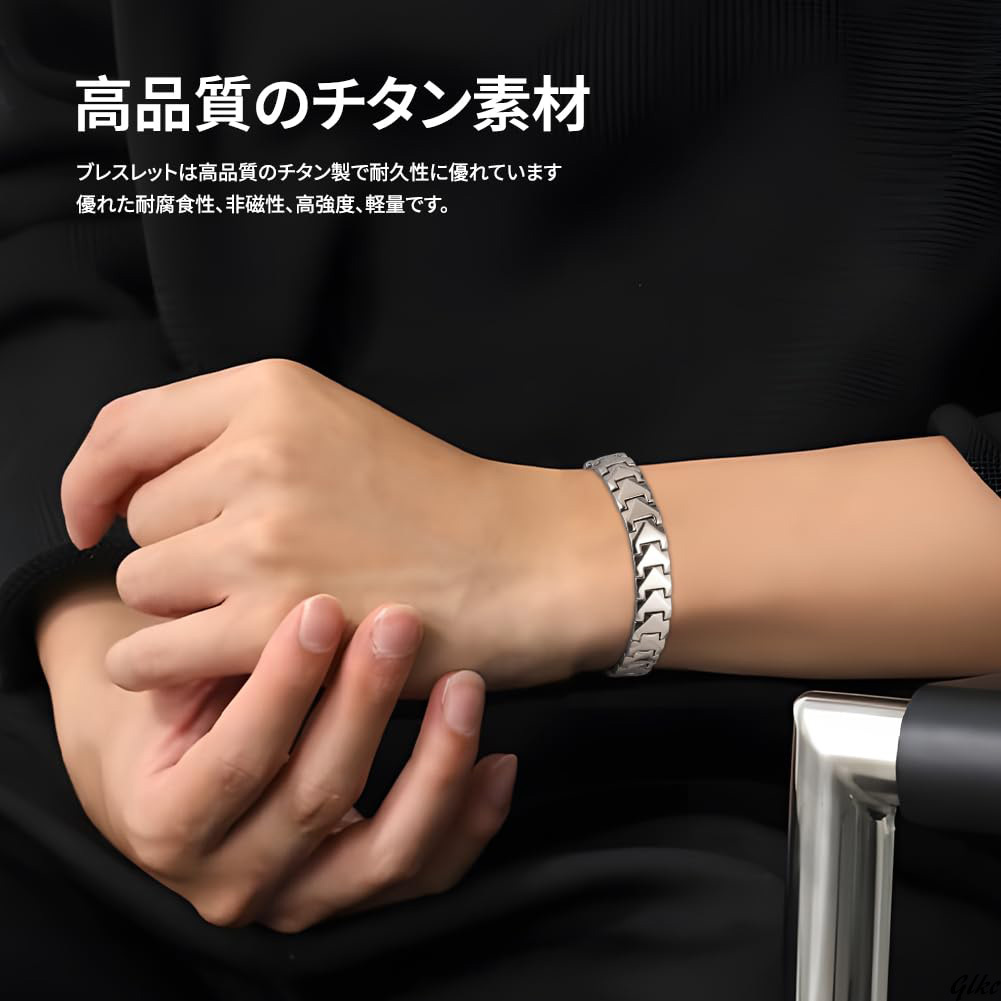 【24粒の天然ゲルマニウムが微弱電流を発し、リラックスをサポート】 ブレスレット チタン 磁気 健康 静電気除去 ギフト レディース メンズ