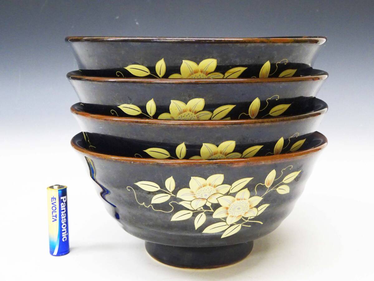 ◆(EG) 美濃焼 どんぶり 4客セット 直径 約17cm 花模様 そば うどん 蕎麦 饂飩 鉢 丼 丼物 和食器 店舗什器 飲食店 食堂 居酒屋