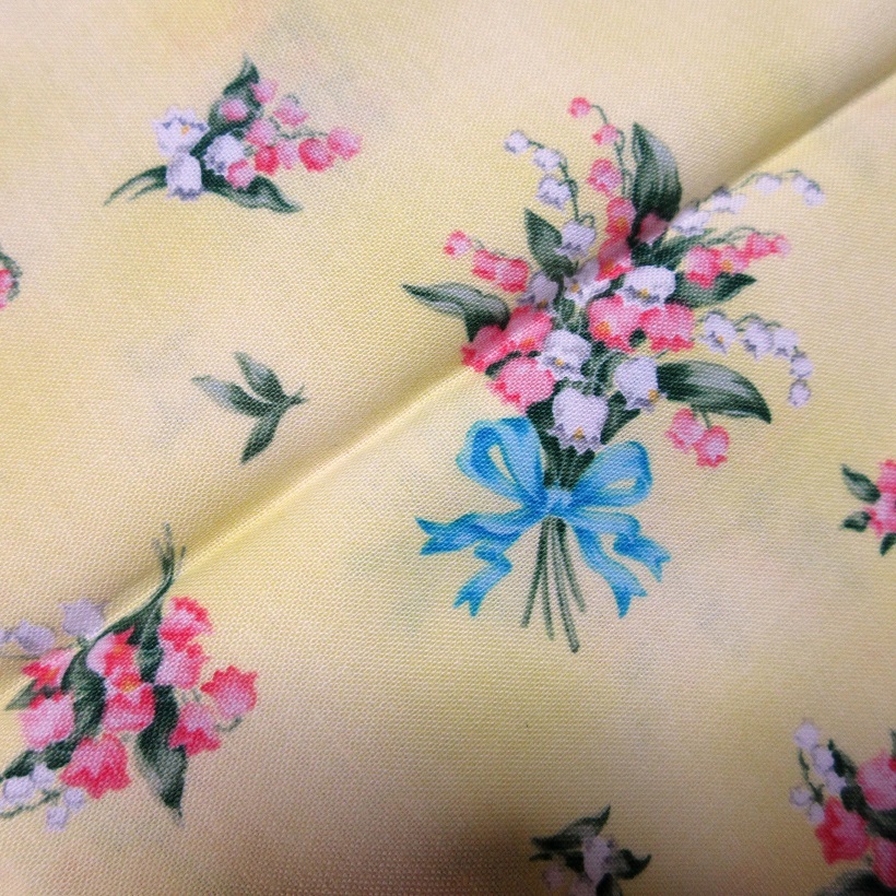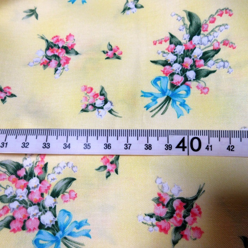 ★セミヴィンテージすずらんとりぼん。黄色はもっと明るい綺麗な色になります。パッチワーク巾着・布小物・ポーチに。