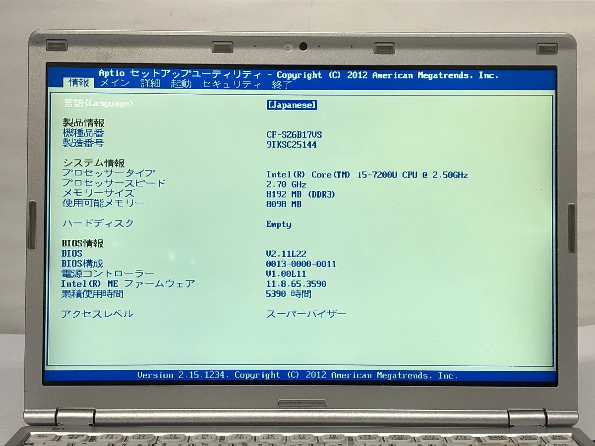 ジャンク/ Panasonic CF-SZ6B17VS Intel Core i5-7200U メモリ8.19GB ストレージ無し 【K15353】