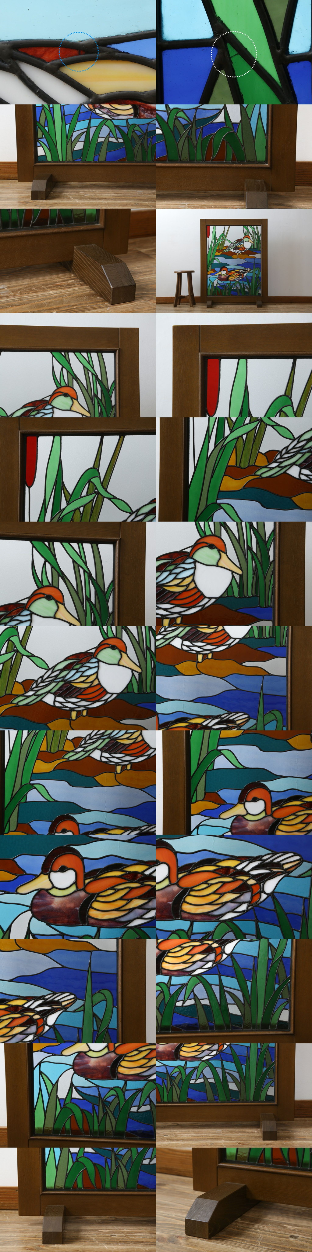 R-076542 中古 自然の風景を切り取ったデザインに癒されるステンドグラスパーテーション(衝立て、衝い立て、つい立て、間仕切り)