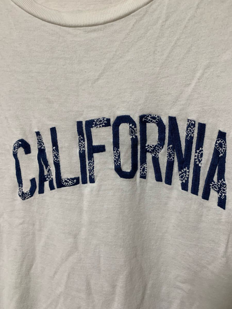 CALIFORNIAロゴをペイズリー刺繍した手の凝った一枚です。