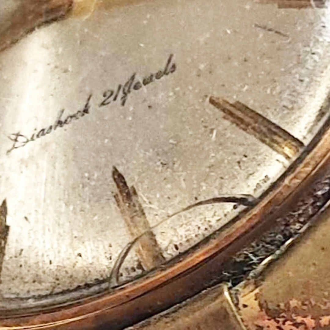 出品時、ネジを巻いて秒針が動作しております。風防下部にヒビが見えます。