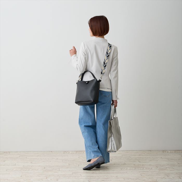 | サイズ | ヨコ(上部)30cm(下部)24cm×タテ25cm×マチ11cm/持ち手:35cm/ショルダー:最長時120cm |