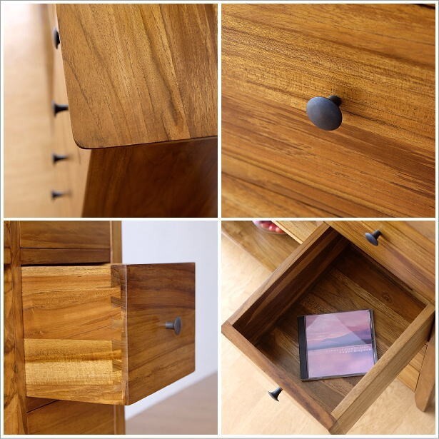 | 高級材料チーク無垢材を100%使用した オリジナル収納ラック&チェストです 本棚と引き出し収納がセットになって 実用性はもちろん、 リビングをスッキリ見せてくれる効果も 奥行35cmというスリムサイズもポイントです 使えば使うほどチーク材の木の味わいが出てきます 商品名 : チークラックチェスト ミドル(wat7189) 全体のサイズ(cm) : 幅90×奥行35×高さ89.5 天板のサイズ : 幅90×奥行35 オープン棚のサイズ : 幅51×奥行30.5 落下防止用の桟の高さ : 3 空間高さ : 36 ※上下段共通 引き出し内寸 : 幅21.5×奥行27.5×深さ15 脚下空間高さ : 10 棚板の厚み : 2 材質 : 100%チーク無垢材 塗装 : シェラック 重量 : 約30kg 生産国 : インドネシア ★床のキズ防止フェルトを貼ってお届けします |