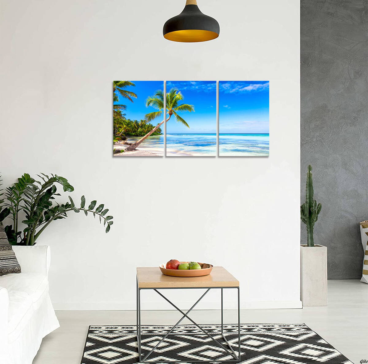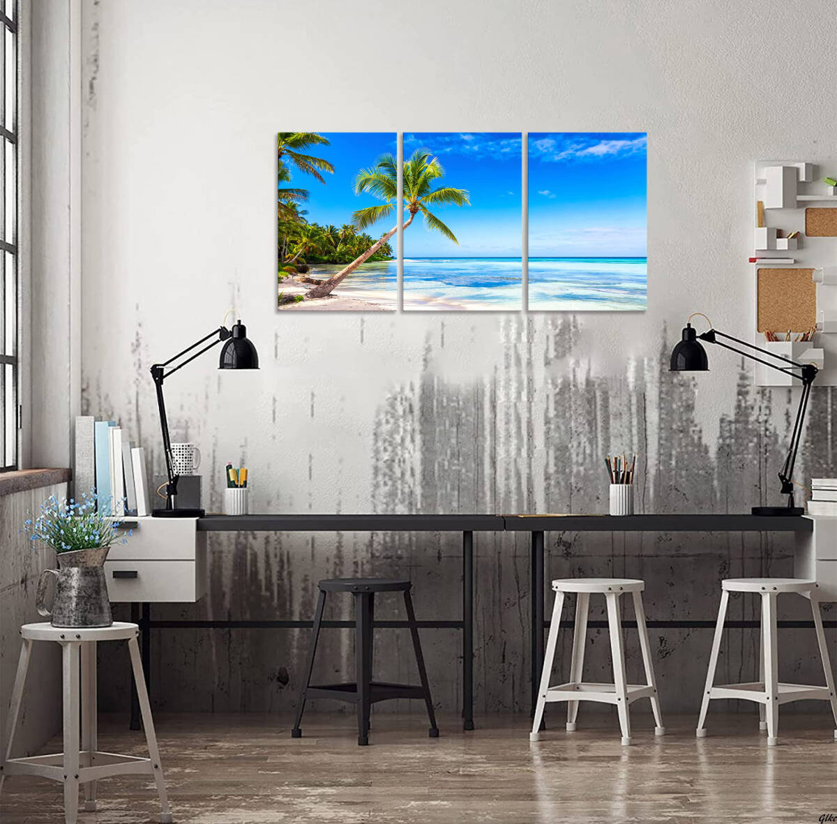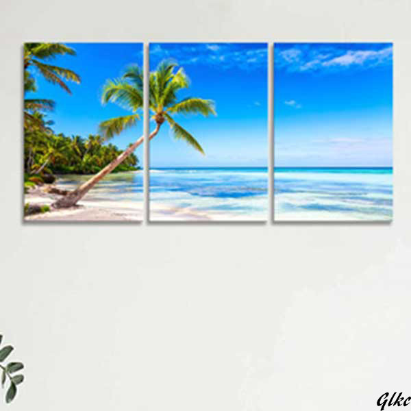 自然豊かな海と青い空をモチーフにした3枚セットのアートパネルです。