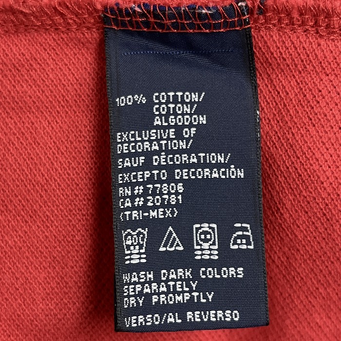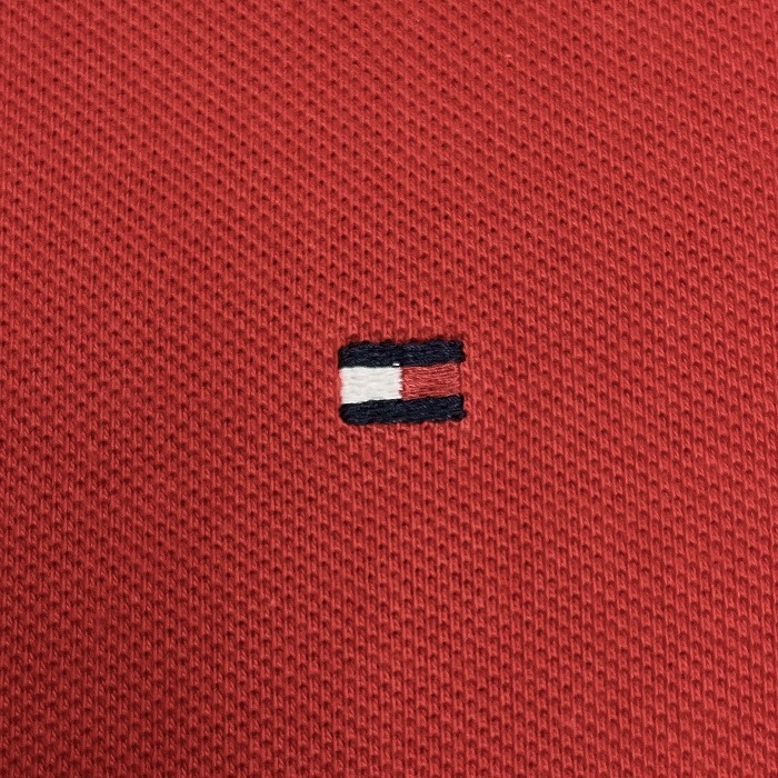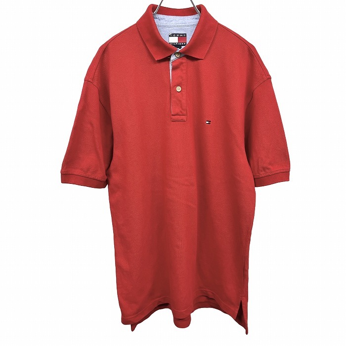| 商品タイトル | トミーヒルフィガー TOMMY HILFIGER ポロシャツ 鹿の子 ロゴ刺繍 ポケット無し ロングテール 半袖 綿100% S レッド 赤×杢青 メンズ |