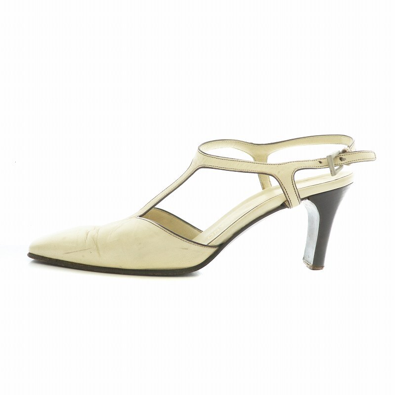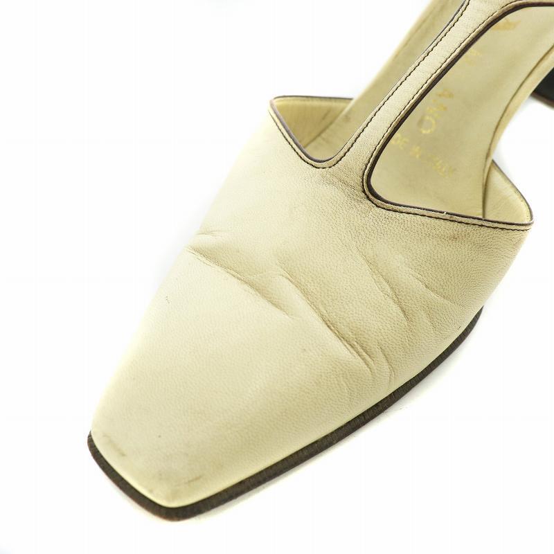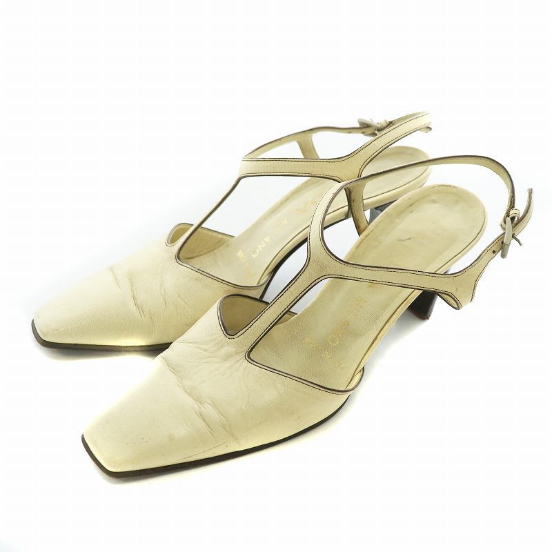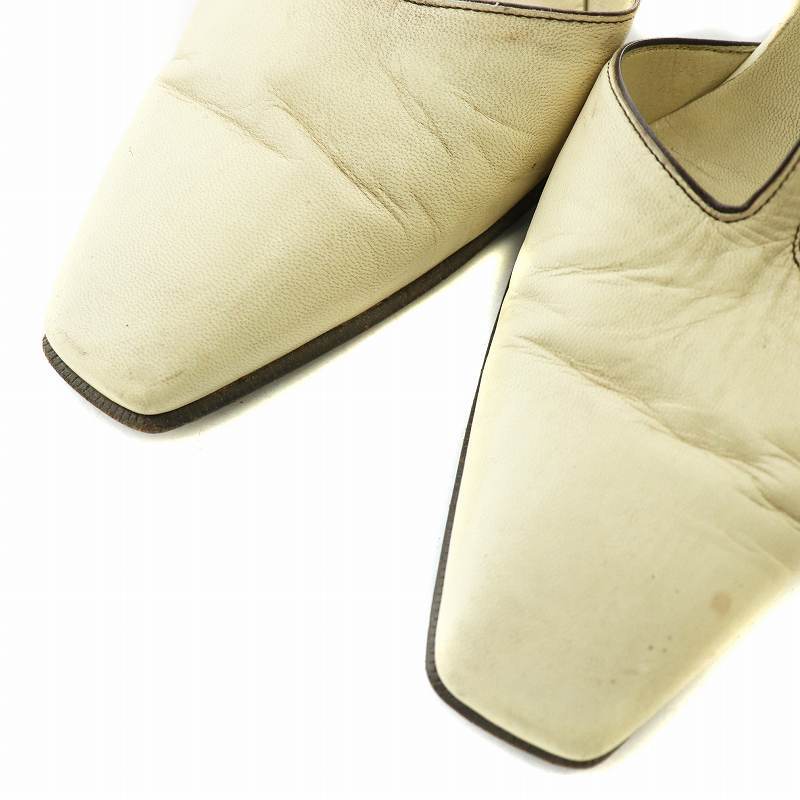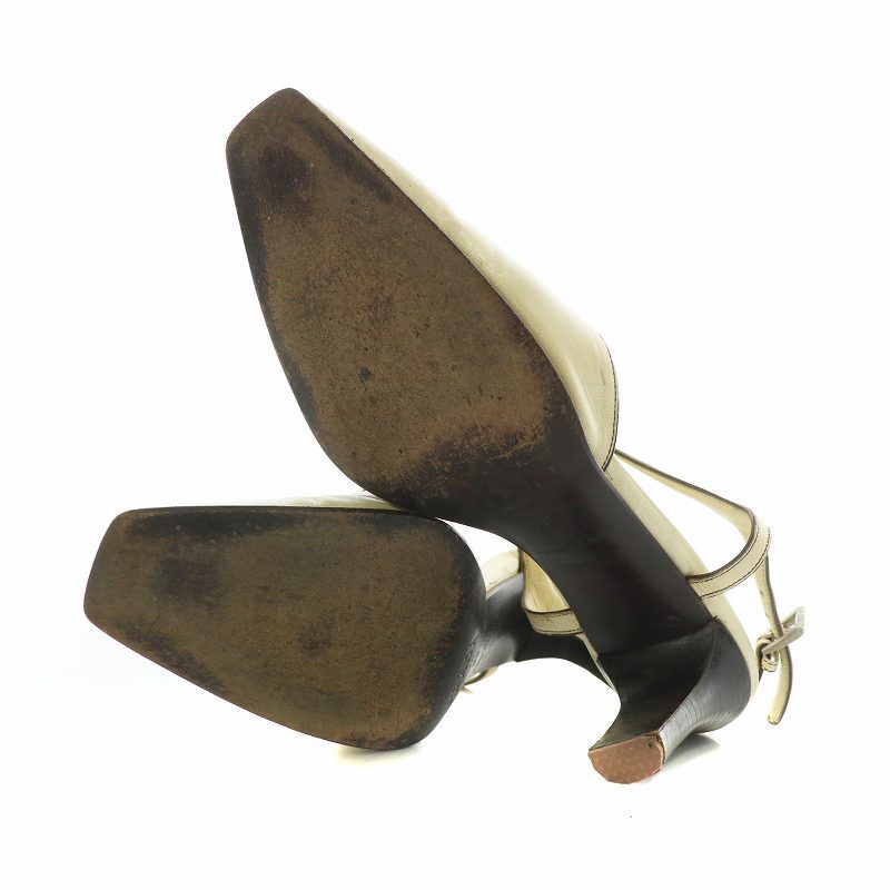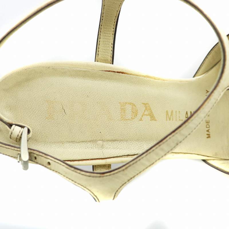 プラダ PRADA サンダル レザー スクエアトゥ チャンキーヒール ストラップ 36 23cm アイボリー /XZ ■GY40 レディース