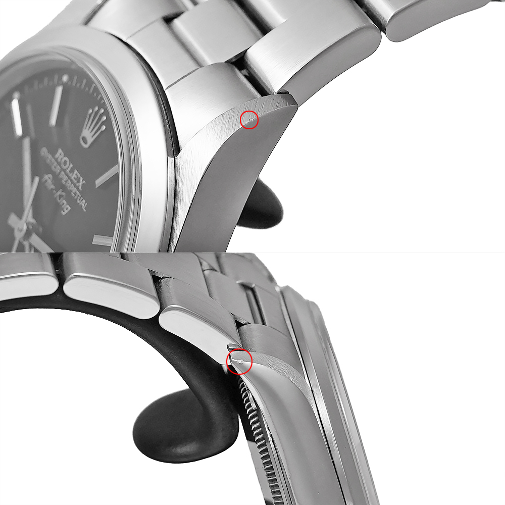12時側のラグに若干の凹み傷がございます。詳細は8枚目の写真をご確認ください。その他の部分は弊社にて外装仕上げを行っており、目立つような傷はなく、年代を考慮するとUSED品としては綺麗な状態です。