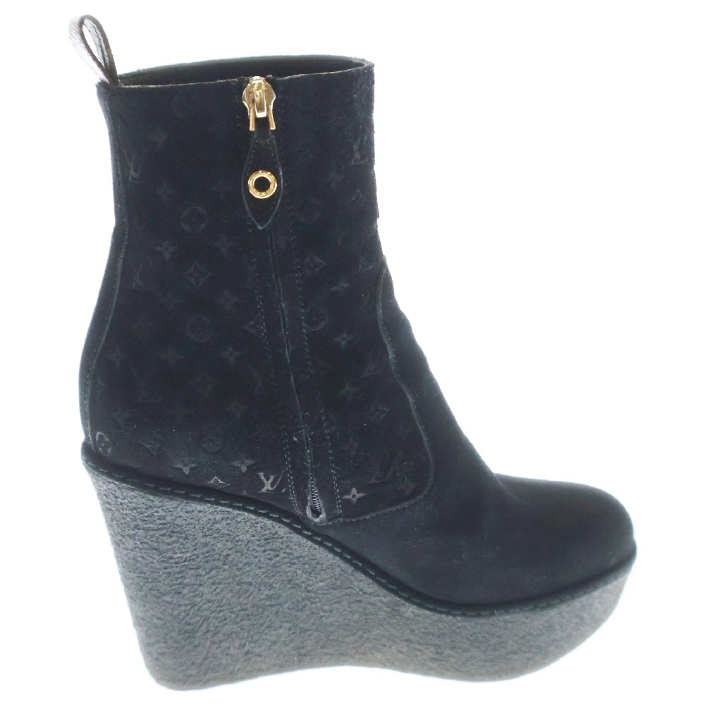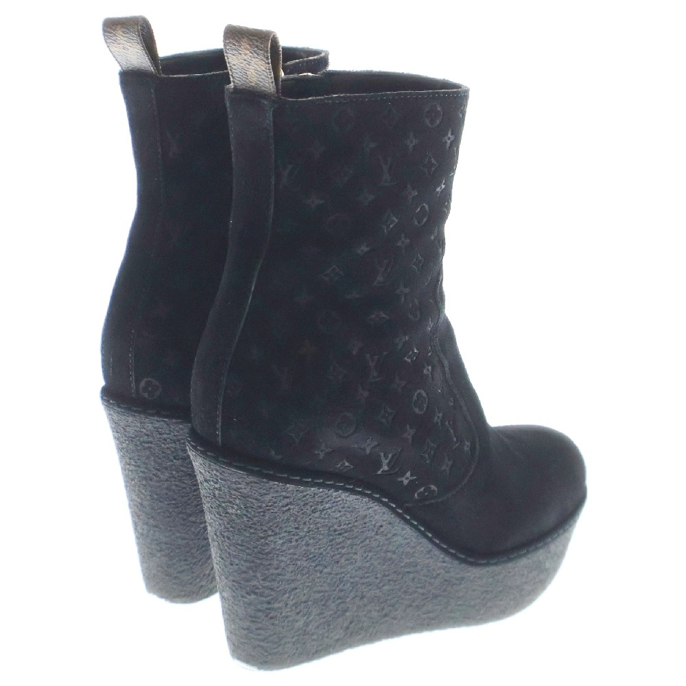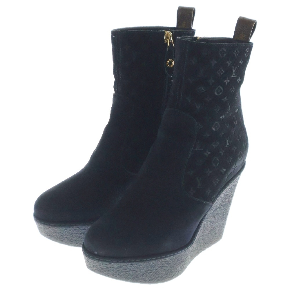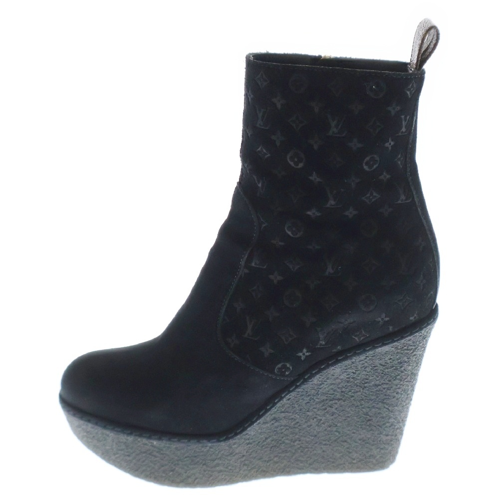LOUIS VUITTON ルイヴィトン モノグラム サイドジップスエードブーツ レディース スウェード ブラック