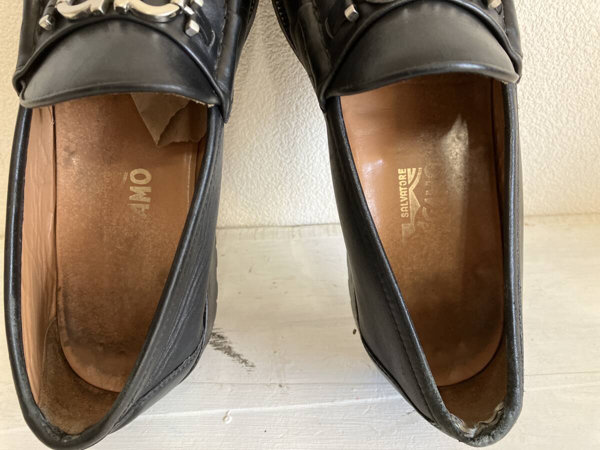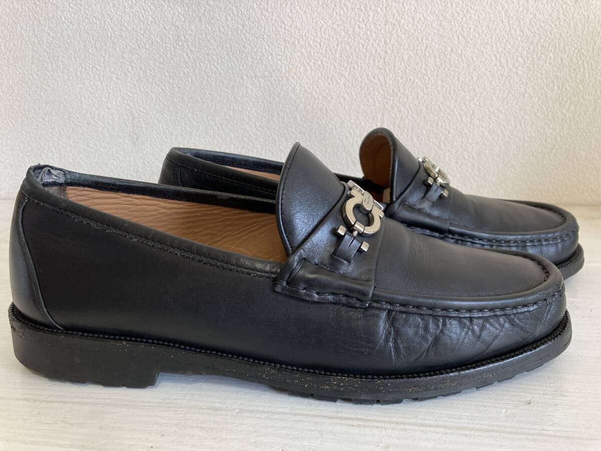 即決 Salvatore Ferragamo FIRENZE サルヴァトーレ フェラガモ ガンチーニ ローファー ビジネスシューズ シルバー金具 黒 9 27.5㎝位