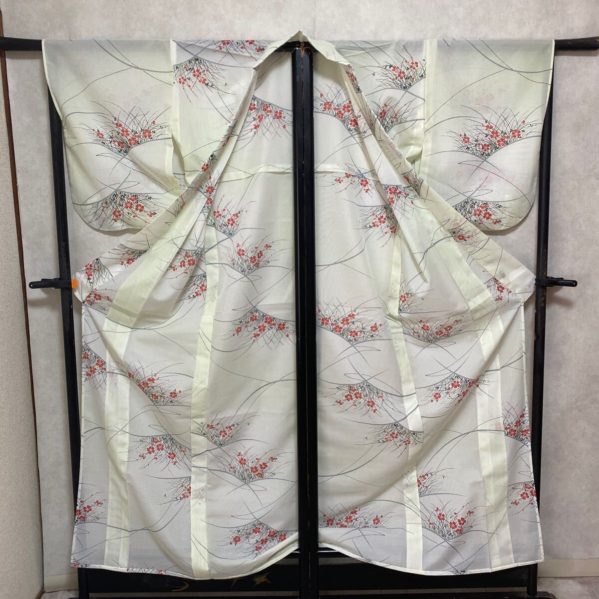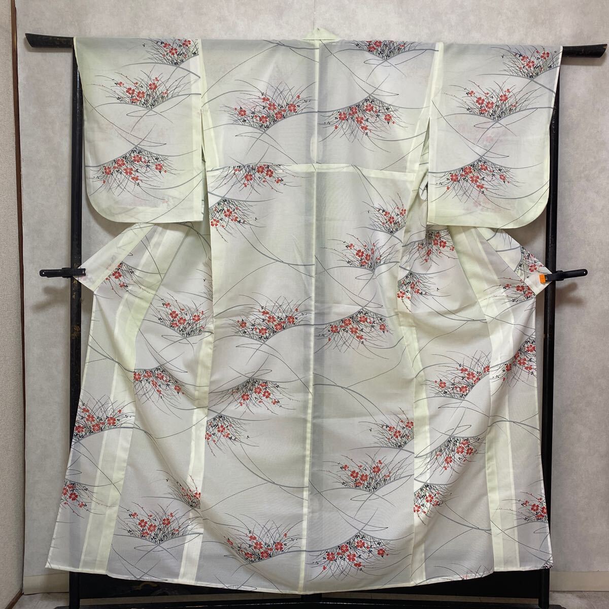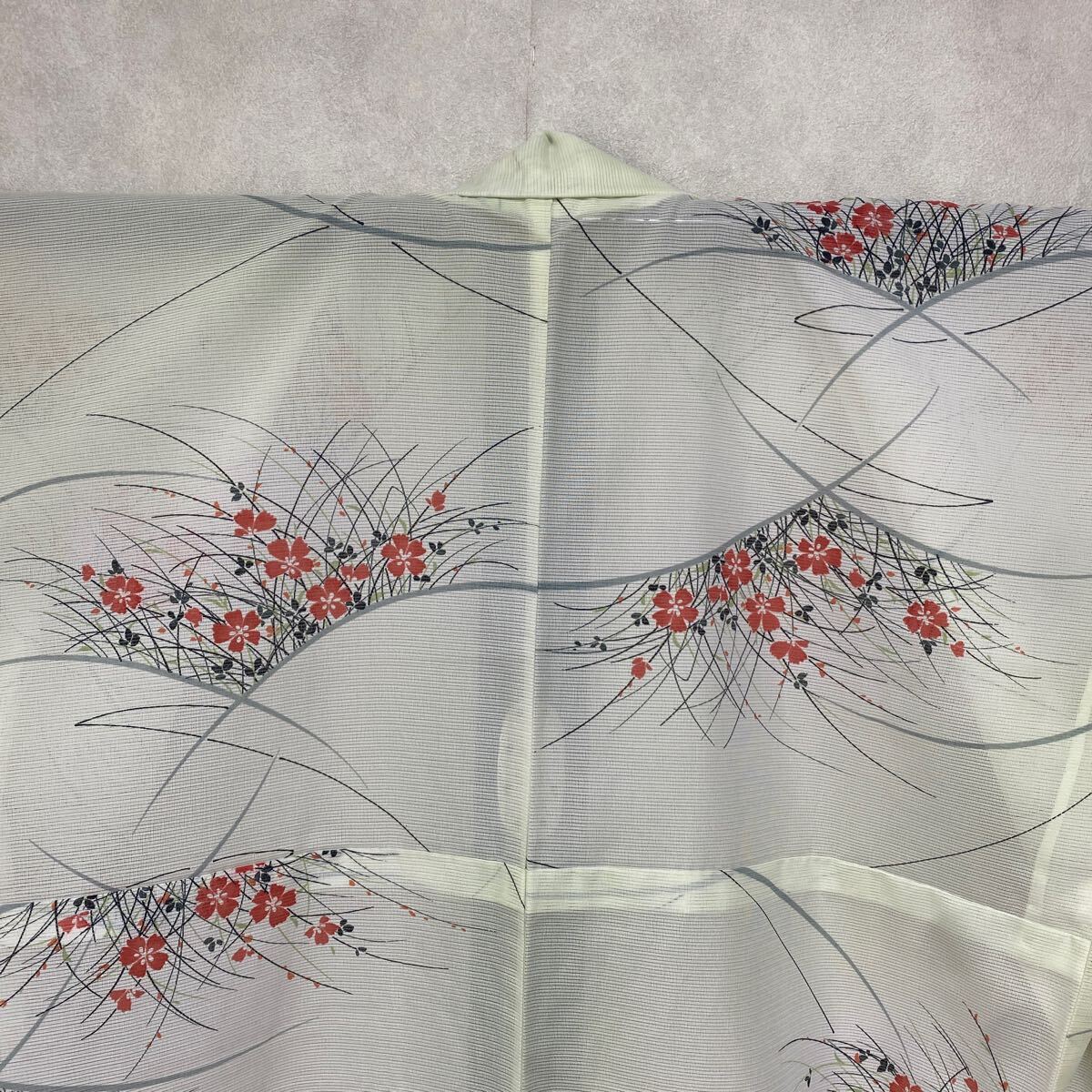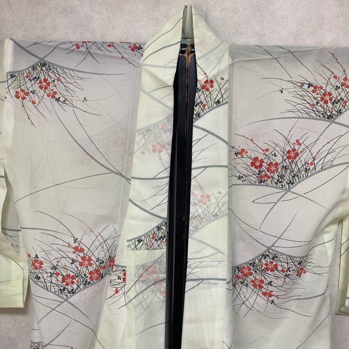 アンティークお好きな方へ 単衣 絽 紗 夏物 着物 正絹 昭和レトロ 大正ロマン モダン 和洋折衷コーデ リメイク 薄黄緑色 花 涼やか か02-2w