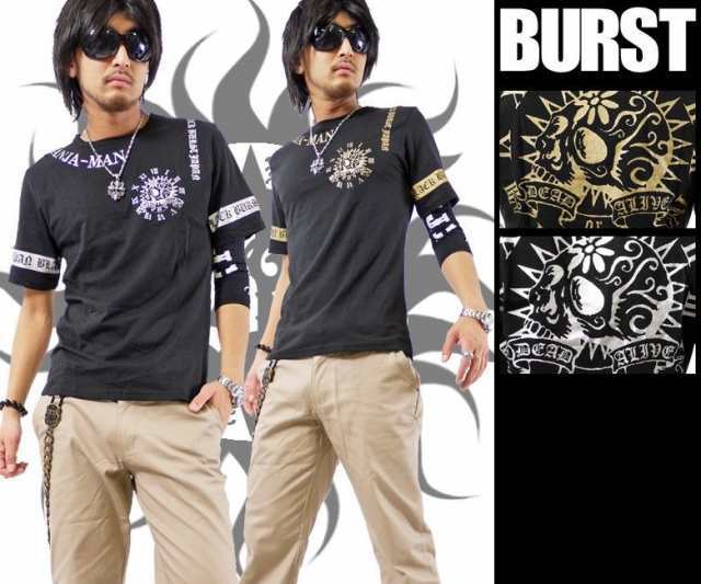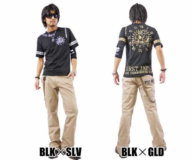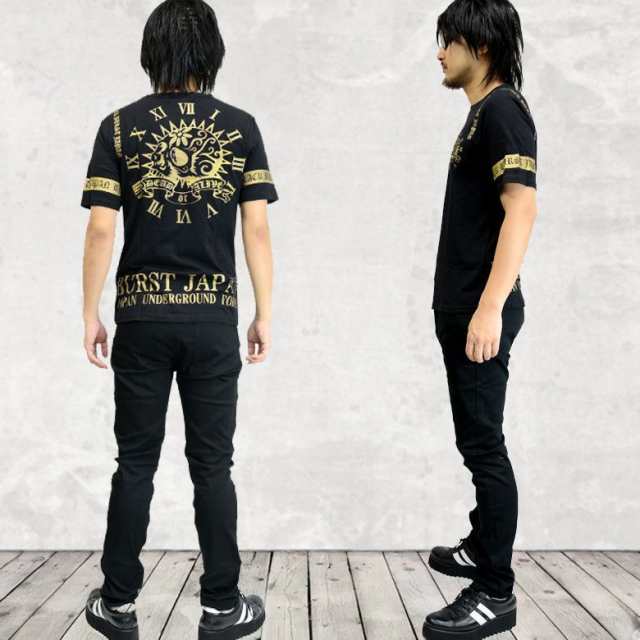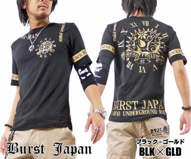 BURST 半袖Tシャツ メキシカンスカルプリント半袖Tシャツ ブラック×ゴールド 70557 新品ブラックゴールド L