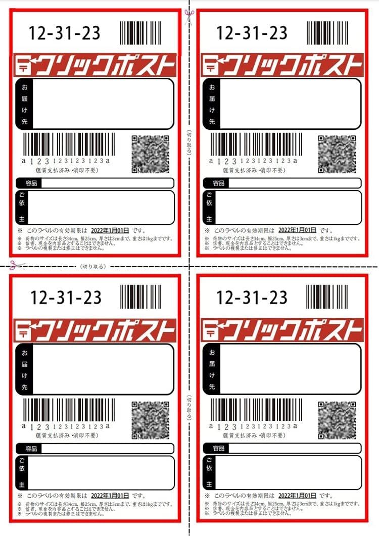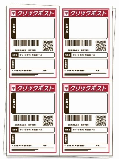 ■日本郵便株式会社が提供しているクリックポストの送り状サイズに対応したラベルシールです。