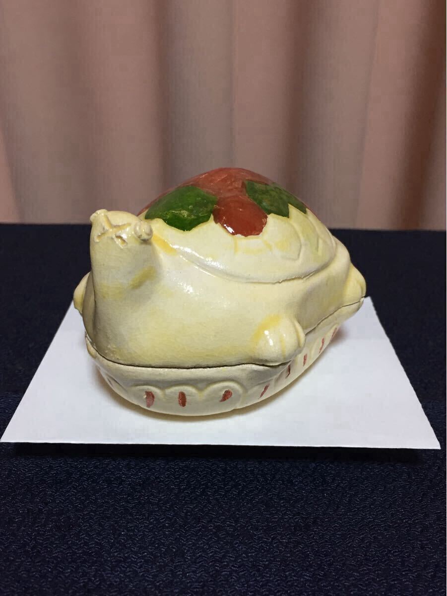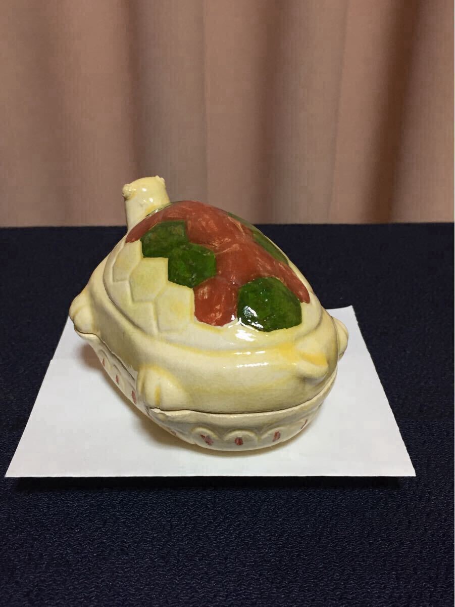 赤津焼 中島卓の大亀香合です。目出度さを象徴するアイテムは様々ありますが 中でも “鶴” とか “亀” は別格の存在で、こればかりは 形でも文字でも 一見しただけで “めでたさ” がイメージされてしまい、長年にわたり培われた比類ないパワーに驚かされます。