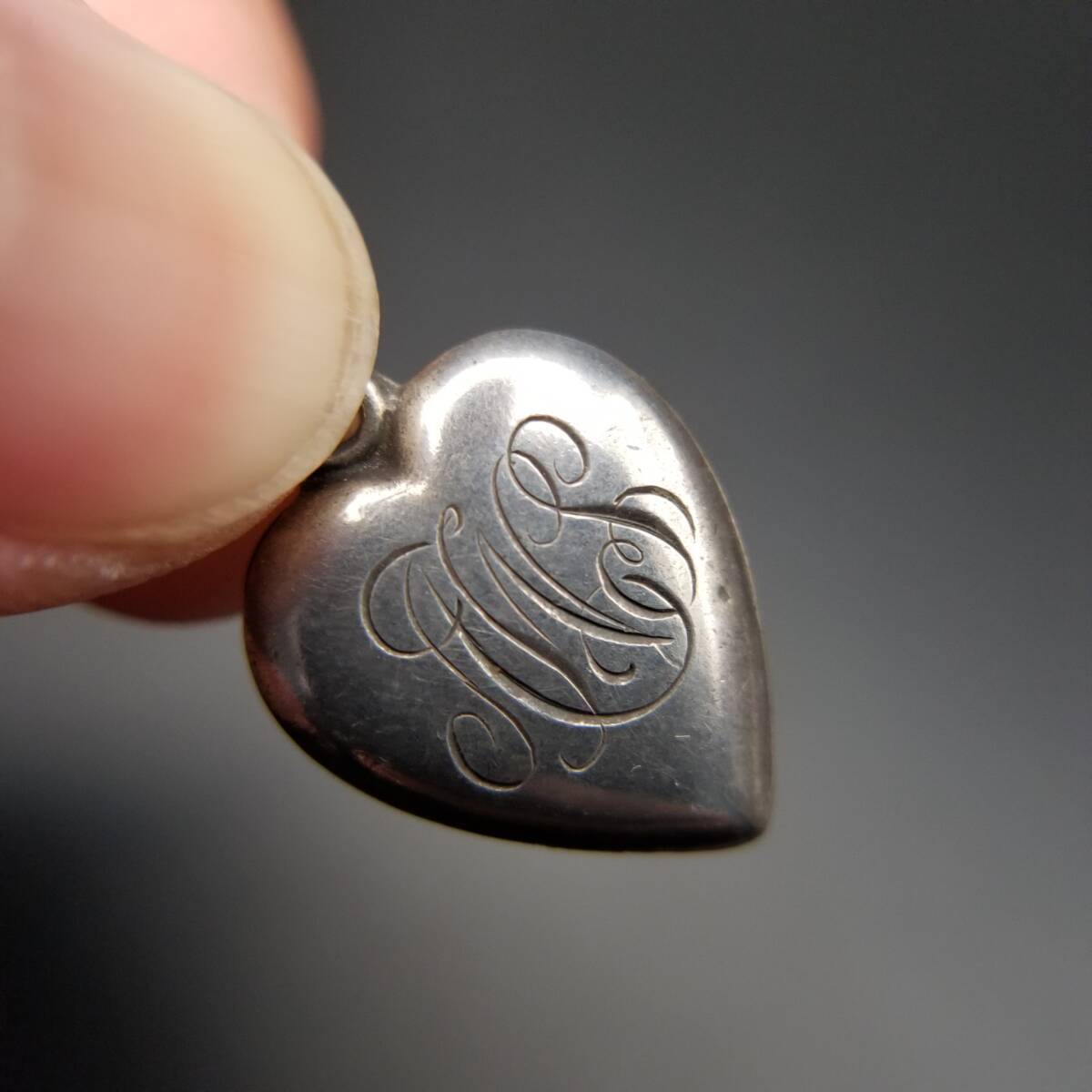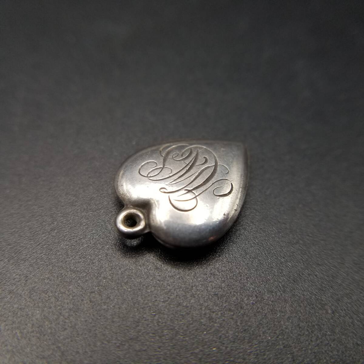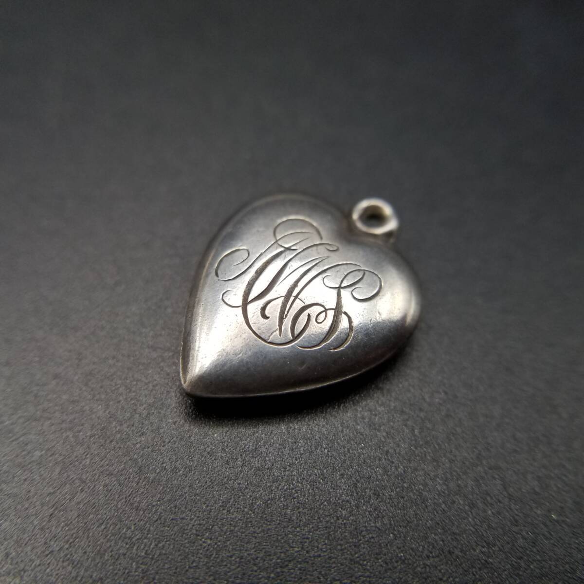 WWII期 モノグラム AWS ヴィンテージ パフィーハート 925 シルバー チャーム 銀 ペンダントヘッド Sweet Heart Y22-E