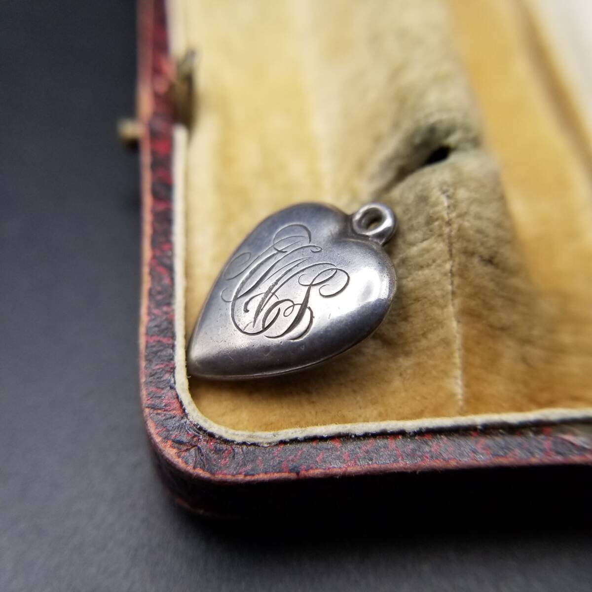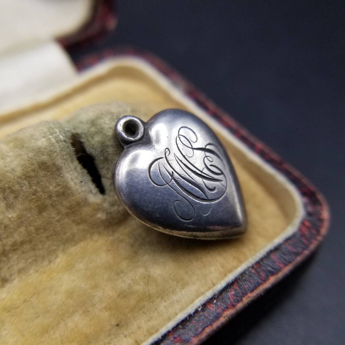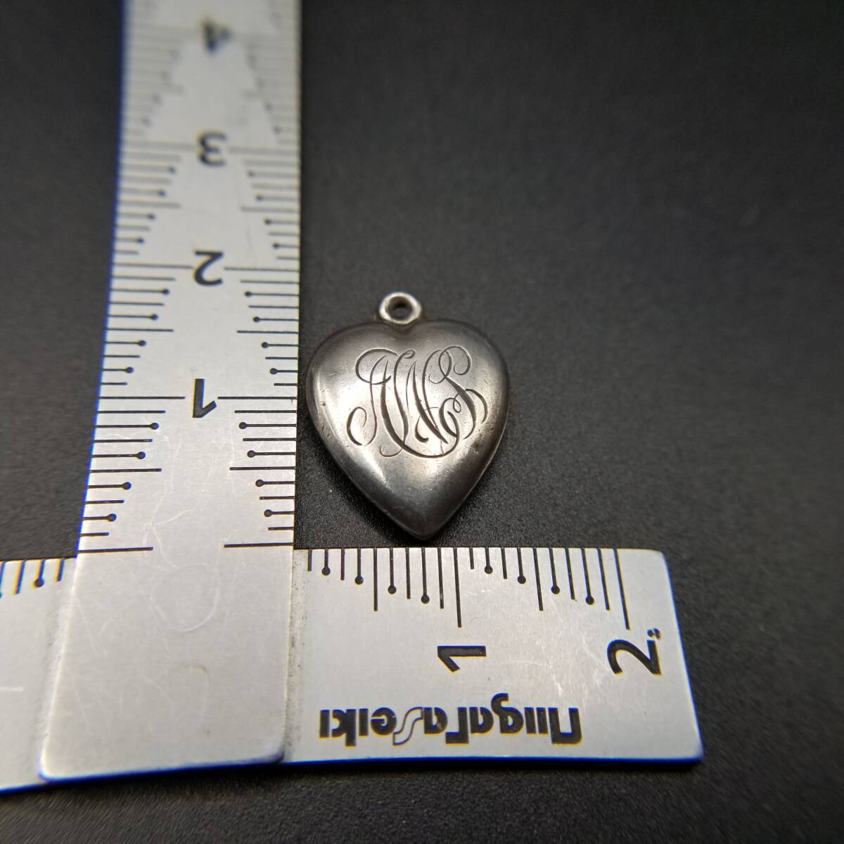 WWII期 モノグラム AWS ヴィンテージ パフィーハート 925 シルバー チャーム 銀 ペンダントヘッド Sweet Heart Y22-E