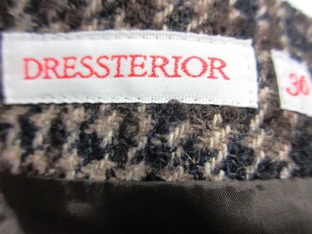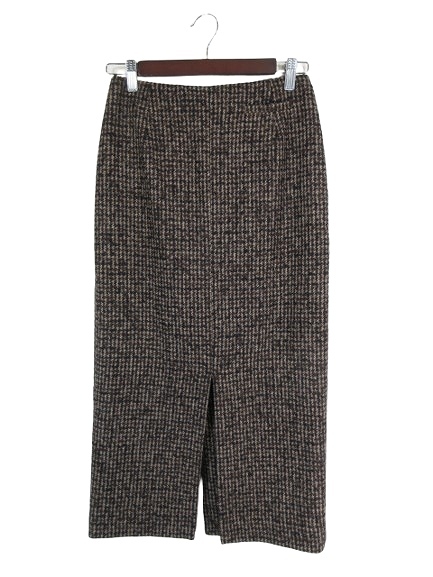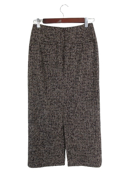 ドレステリア DRESSTERIOR ウール スカート ロング ジップ スリット フェイクポケット チェック サイズ36 ブラウン QQQ レディース