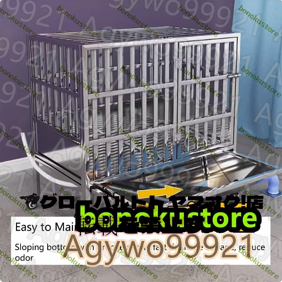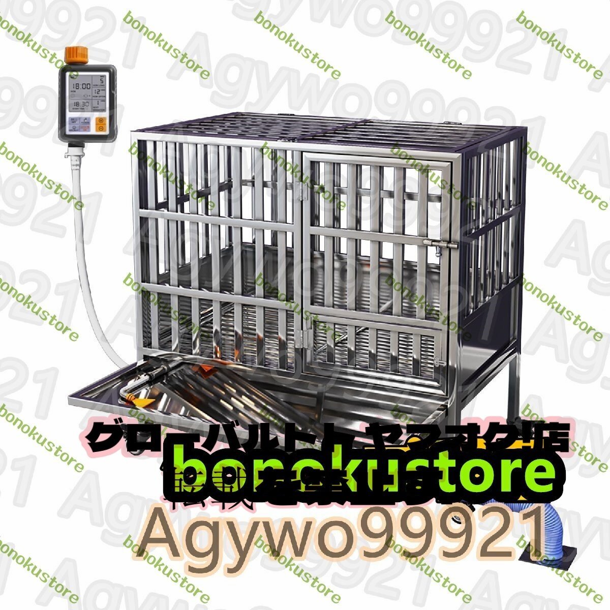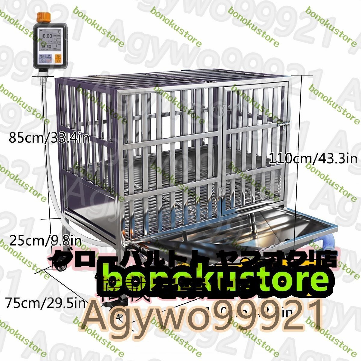 ステンレス製のペットケージ、犬用ケージ、車輪付きの屋内屋外犬小屋、自動で犬トイレを洗い流し付き 犬舎 脱走防止 小型犬/中型犬/大型犬(110cm/43.3in)