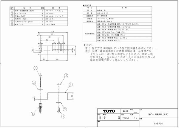 | ★未使用品★湯ぽっと用耐震用脚(床用) RHE706 湯ポットREK,REKBに最適です★TOTO | ||