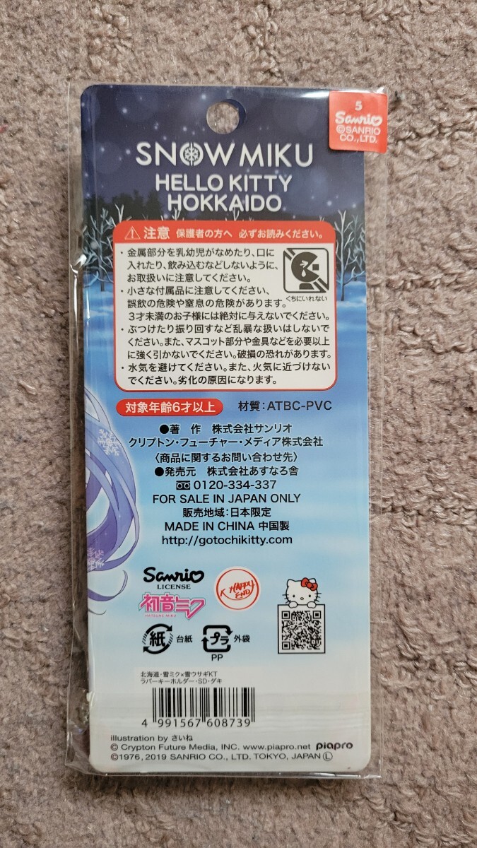 北海道限定の雪ミクと雪ウサギキティのコラボキーホルダーです。 画像に写っているもので全てとなります。商品は新品、未使用、未開封ですが店頭に置いてあるような完全な新品の品質をお求めの方や、神経質な方のご入札はお控えくださるようお願いいたします。 ご入札後、ご落札後はノークレーム、ノーリターン、ノーキャンセルとさせていただきます。また、最近、新規の方のイタズラ入札が大変多くなってきております。新規の方に関しましては、こちらから一方的にお取り引きをキャンセルさせていただくことがございます。ご了承お願いいたします。