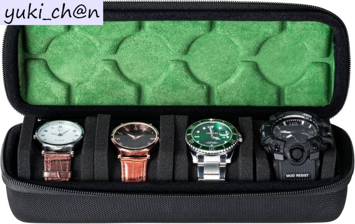 メンズ腕時計 緑 トラベルケースロール 4スロット ソフトフォームピロー付き ストレージオーガナイザーボックス ポータブルディスプレイ