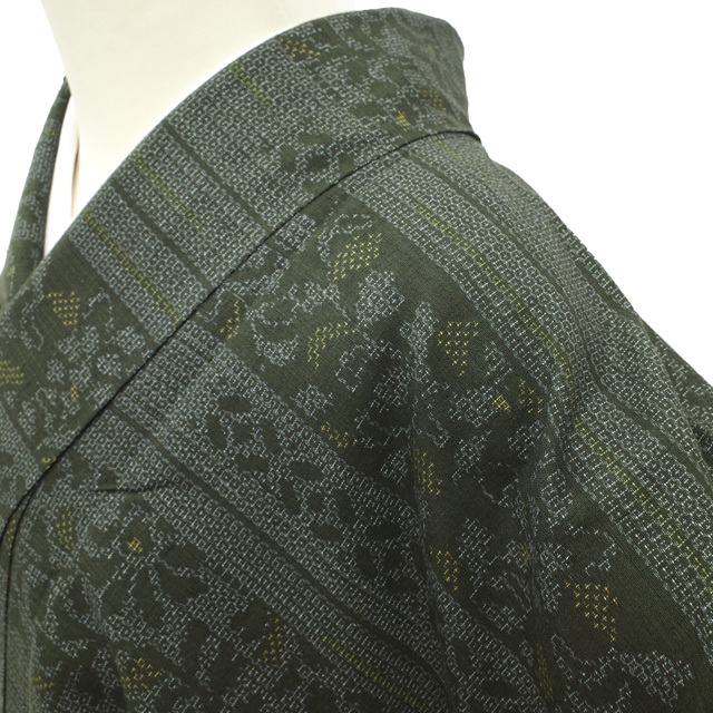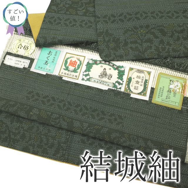 【中古】 すごい値! 結城紬 リサイクル 着物 正絹 袷 奥順 おく玉 100亀甲 深灰緑 草花 真綿結城紬 仕立て上がり 身丈157 裄丈65 Mサイズ 春 秋 冬 中古 リサイクル着物 結城紬 紬 百亀甲 紬八掛 カジュアル着物 普段着 観劇 お食事 ショッピング お出かけ など たとう紙付き 送料無料 20代 30代 40代 50代 60代 70代 ~ 販売 購入 リユース すごいね みやがわ nek01420