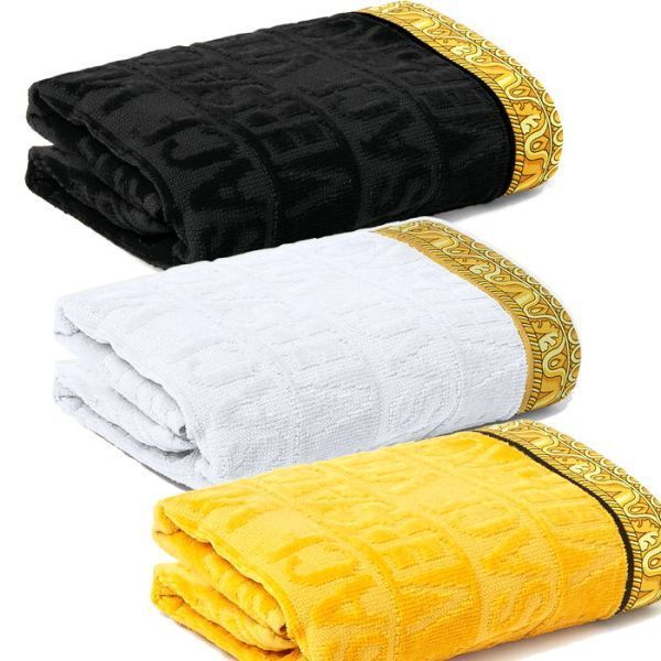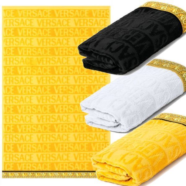 バロック ボーダーと生地全面にあしらった質感が楽しめるロゴ柄が特徴の、贅沢で快適な非常に柔らかいコットン製タオル。