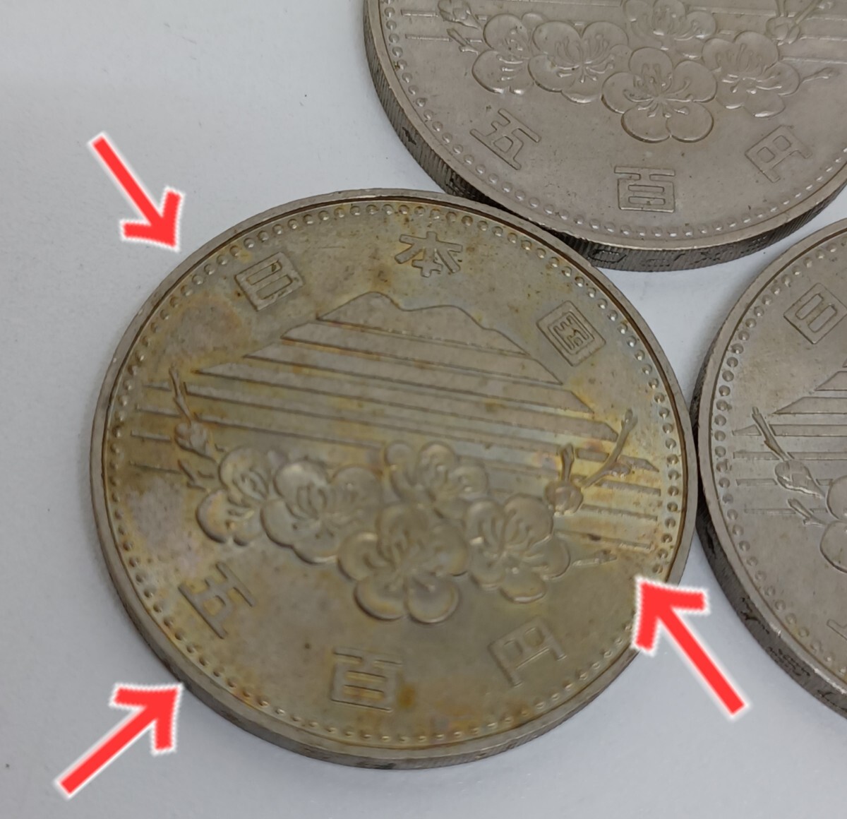 コインのエッジには当たり跡が数か所、表面にも擦り傷、サビのようなものもあり使用感があります。