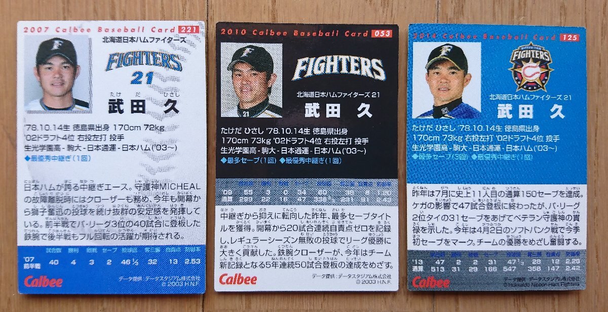 【カード・カルビー】武田久 2007年221 / 2010年053 / 2014年125 計3枚セット 北海道日本ハムファイターズ カルビープロ野球チップス
