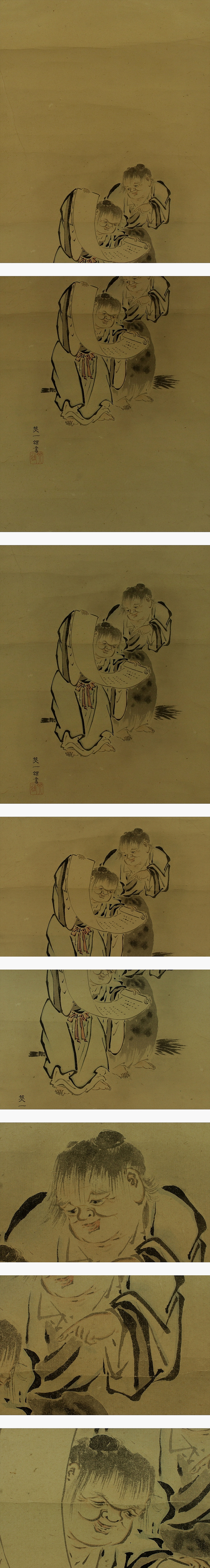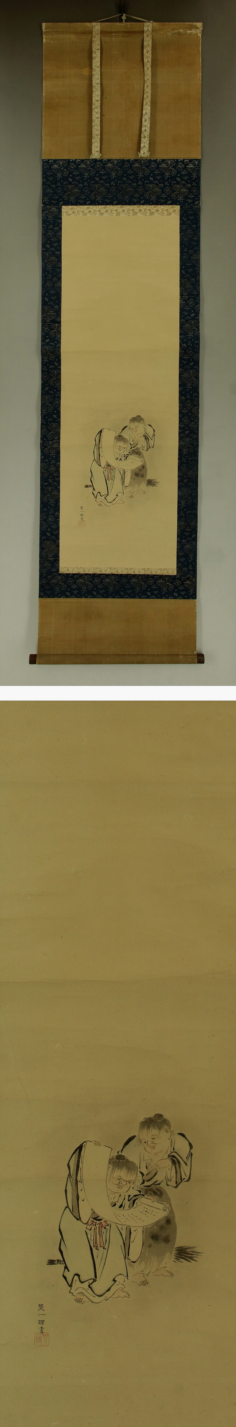 | №2412072【模写】英一蝶【寒山拾得】◆紙本◆合箱◆掛軸 | |