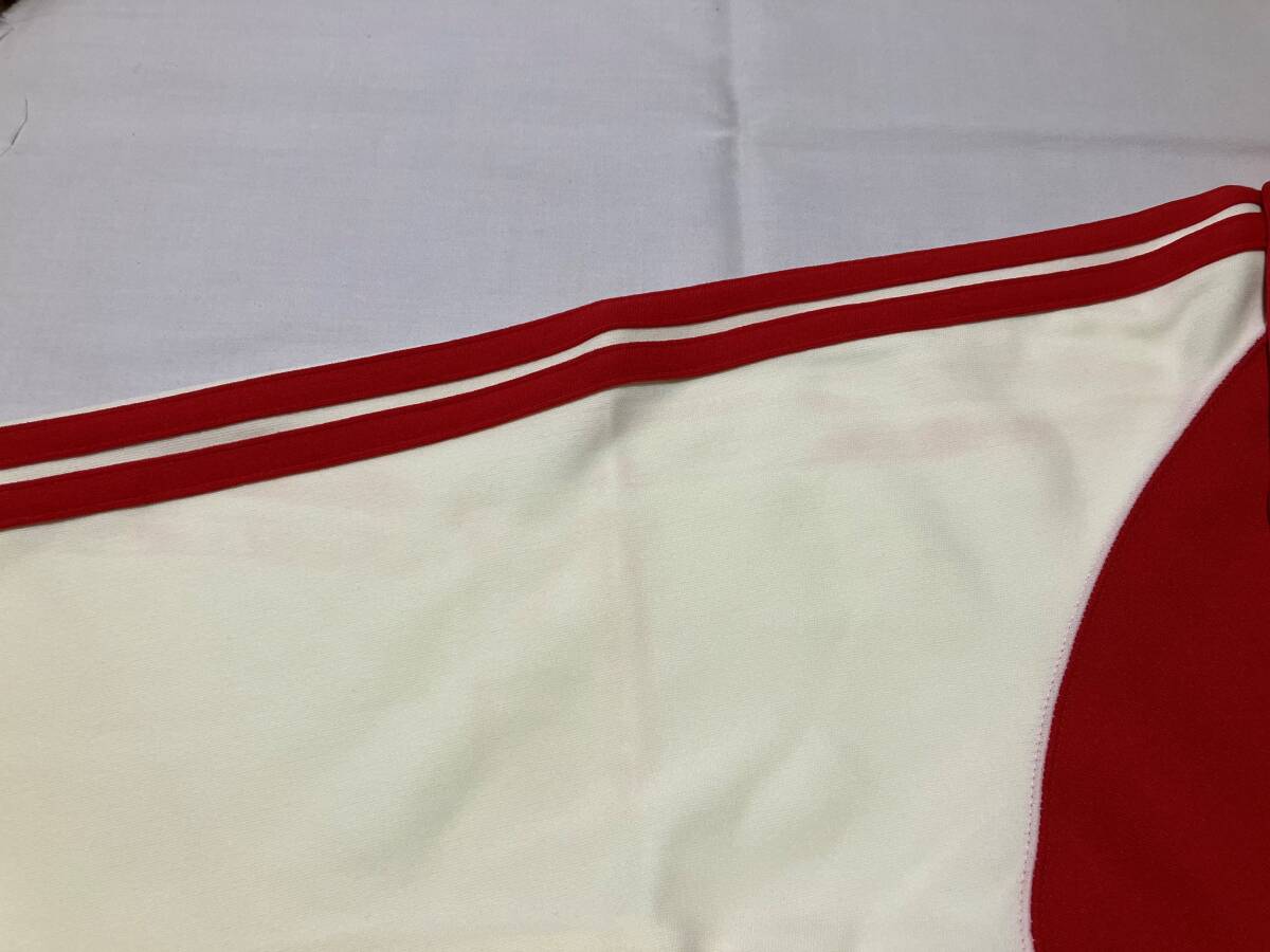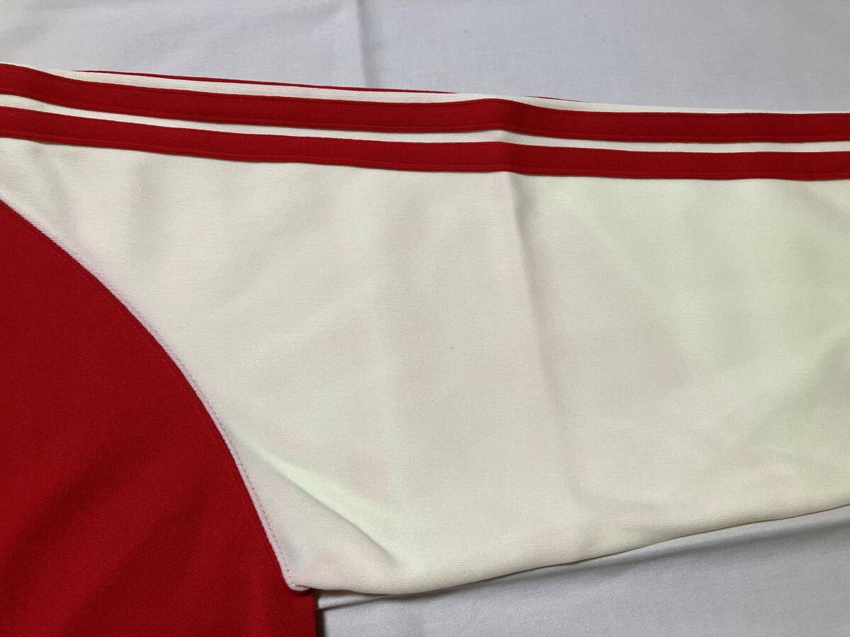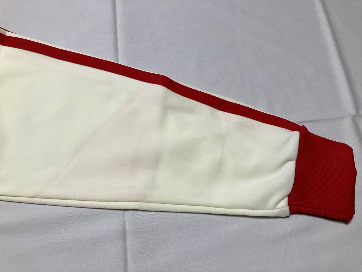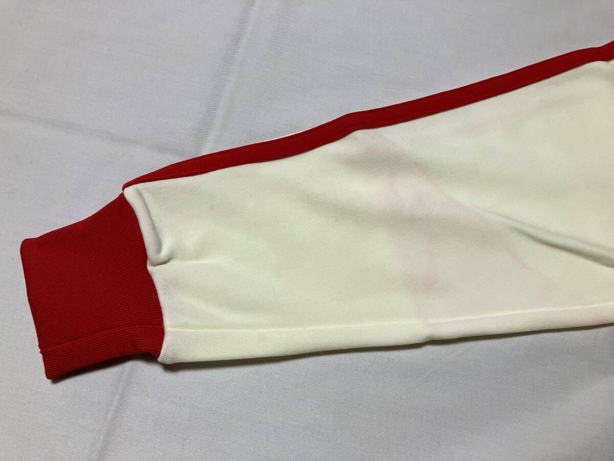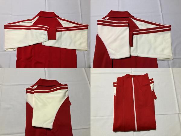| 色:赤×オフ白(薄いクリーム系?) 素材:ポリエステル100% 昔のジャージによく使われた感じの素材です サイズ:M 古い規格のようで現在のMと比較して小さいです Sサイズ程度? 採寸を参考にしてください 採寸:着丈62センチ 身幅45センチ 背中心から袖口まで77センチ 脇の下から袖口まで48センチ 重さ370グラム 測り所が微妙です 参考程度としてお考え下さい 未使用品で長期保管品です ※写真のようにたたまれた状態での長期保管→身頃の赤が袖のオフ白に色移りしています 左右の腕前後になります 真っ赤っかではありませんが、微妙な感じな色移りです ※ファスナーの開け閉めの際(差し込んで引き上げるとき)に少し硬いです 保管に伴うシワ、くせあり 上記の事及び、古いものをご理解いただける方、中古品を理解頂ける方宜しくお願い致します |
