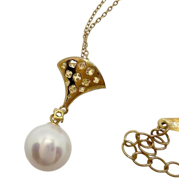 高級感溢れるあこや真珠&ジルコニアデザインモチーフが存在感抜群のネックレスです。