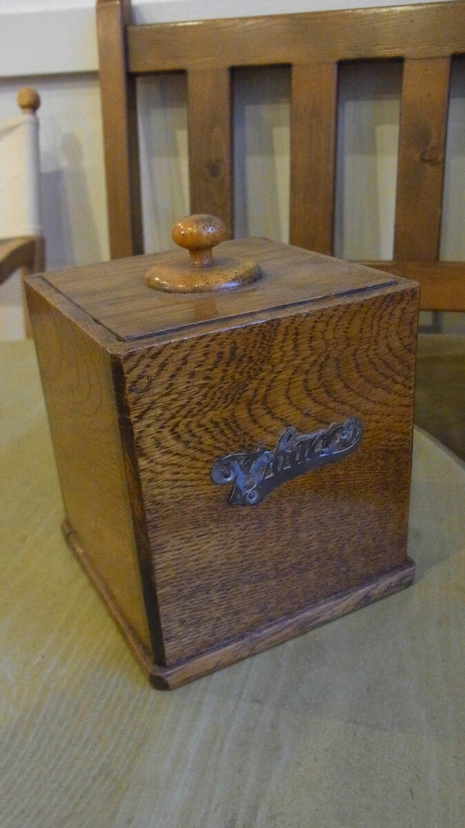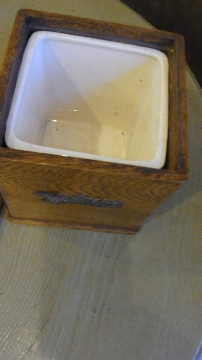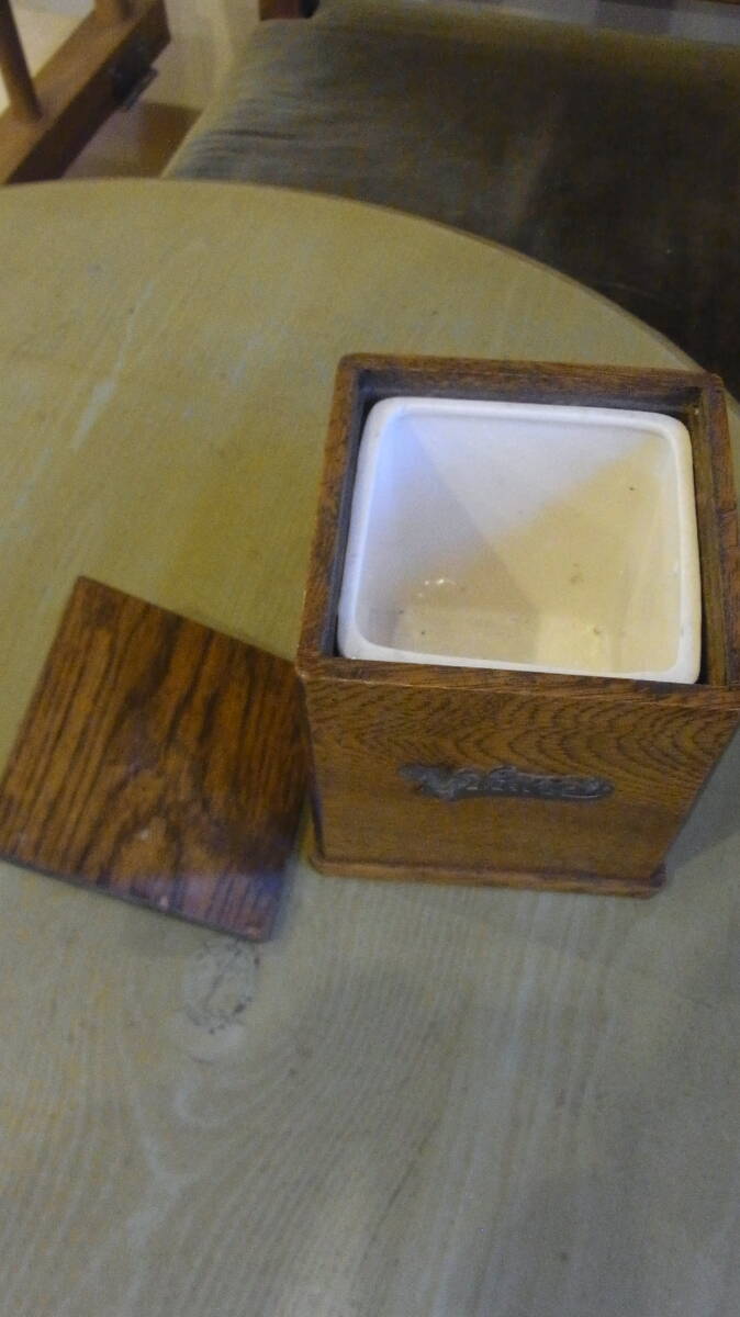1950年代 英国製 タバコケース 側は木製、中は陶器の凝った作りのタバコケースです。陶器部分は取り外せます。10X10X10センチ