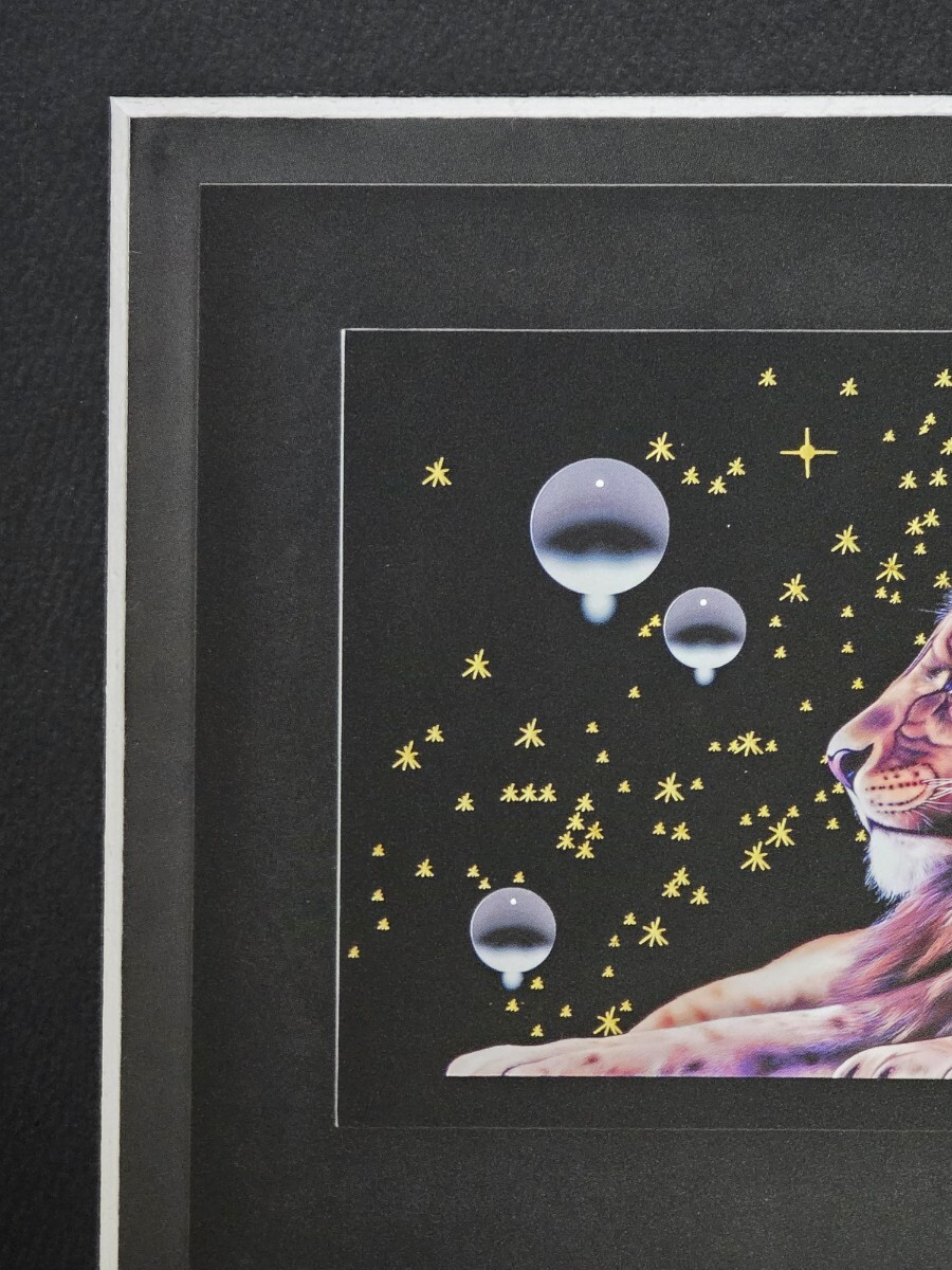 新品額付です。額枠は木製・ブラック、額のサイズは約35.0㎝×29.0㎝、黒のマット、アクリルガラス付です。