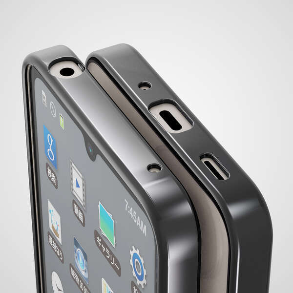 | ●側面やカメラ周り部分にメタリック加工を施した、 上品な輝きを放つ高級感のあるソフトケース | |