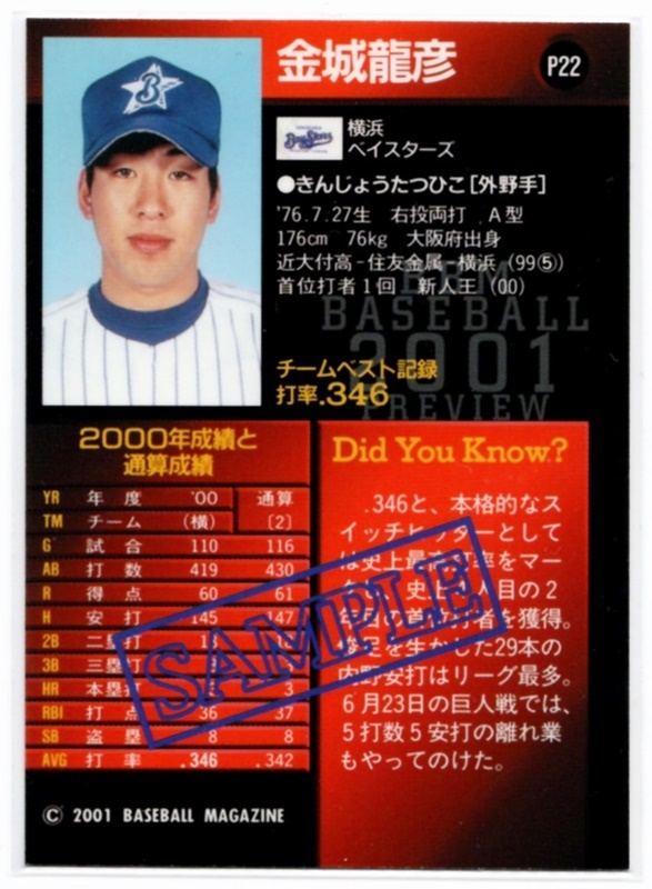 金城龍彦【 Sports Card MAGAZIN (NO.25号) 】2001 BBM ベースボールカード(プレビュー版 プロモーションカード) ☆雑誌付録カード