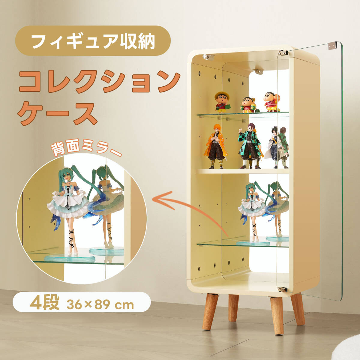 コレクションケース コレクションシェルフ ガラスディスプレイキャビネット4段 高さ調節可能 サイズ:幅36*奥行26*高さ89CM ベージュ
