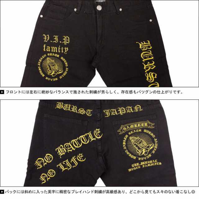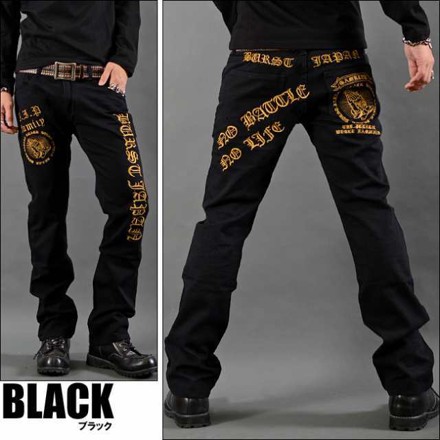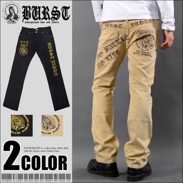 【閉店セール】BURST JAPAN ブランドロゴ バックプレイハンド刺繍 ダミーポケット チノパンツ BUJ-0032 新品 ブラック M