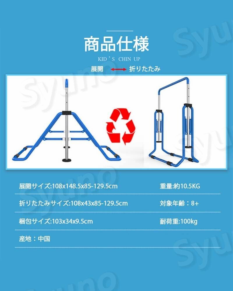 鉄棒 室内 屋外 【 耐荷重100kg 成長に合わせて高さ調節可能 】 子供 キッズ 折りたたみ 室内 屋外 こども