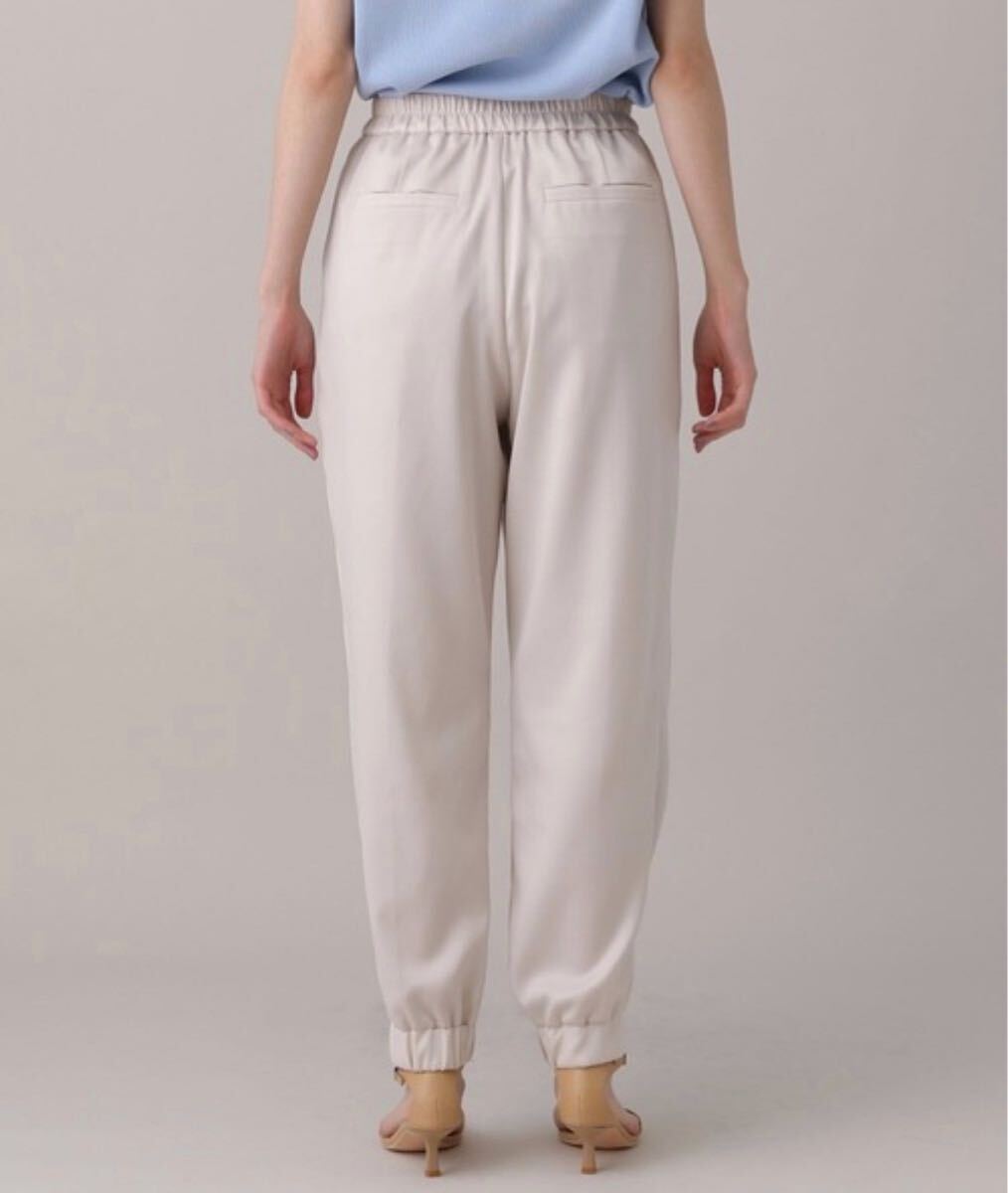 ウエストの2つボタンはさり気ないアクセント、裾にはゴムを入れて楽ちんな履き心地に。